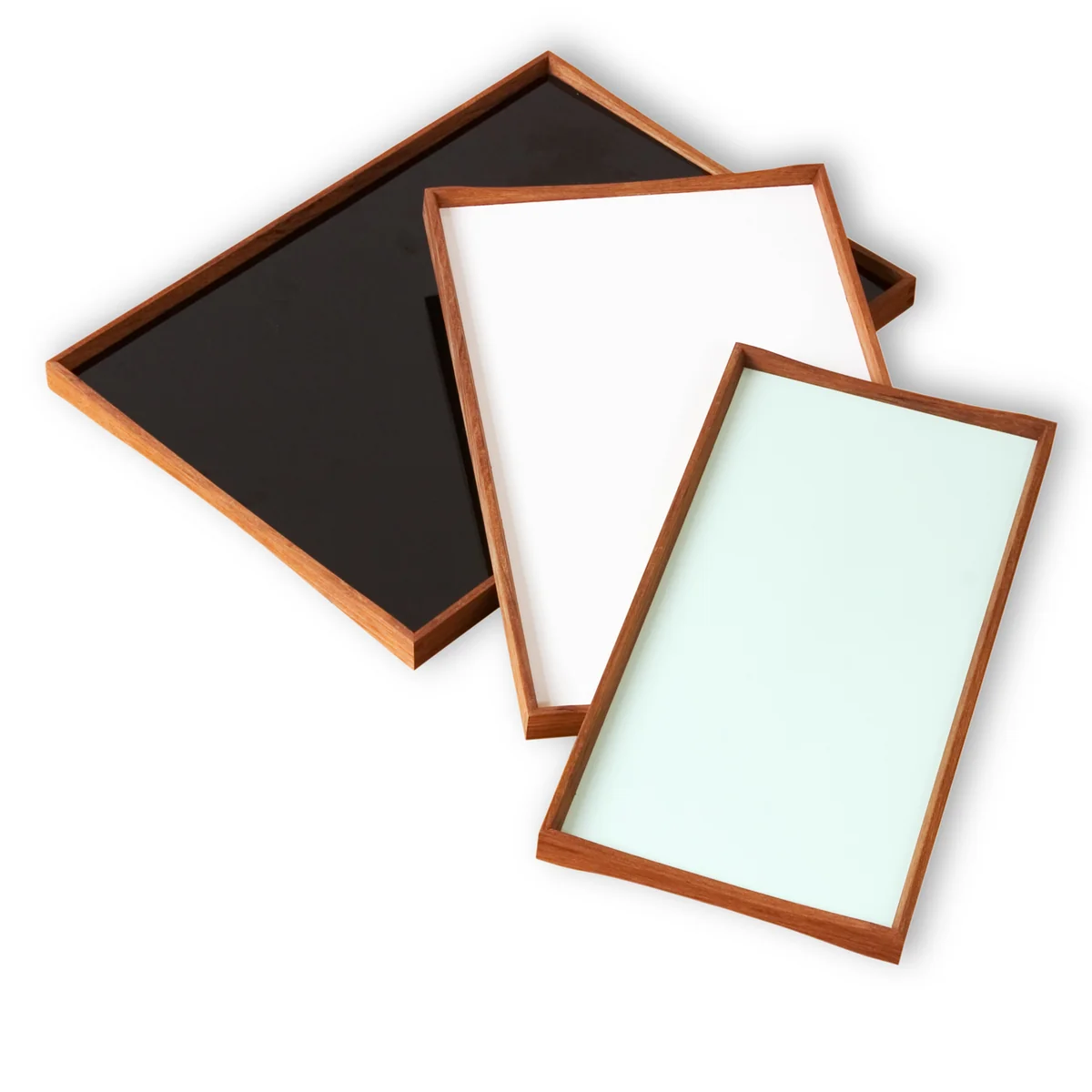Flaches Teak-Tablett mit farbiger Innenfläche