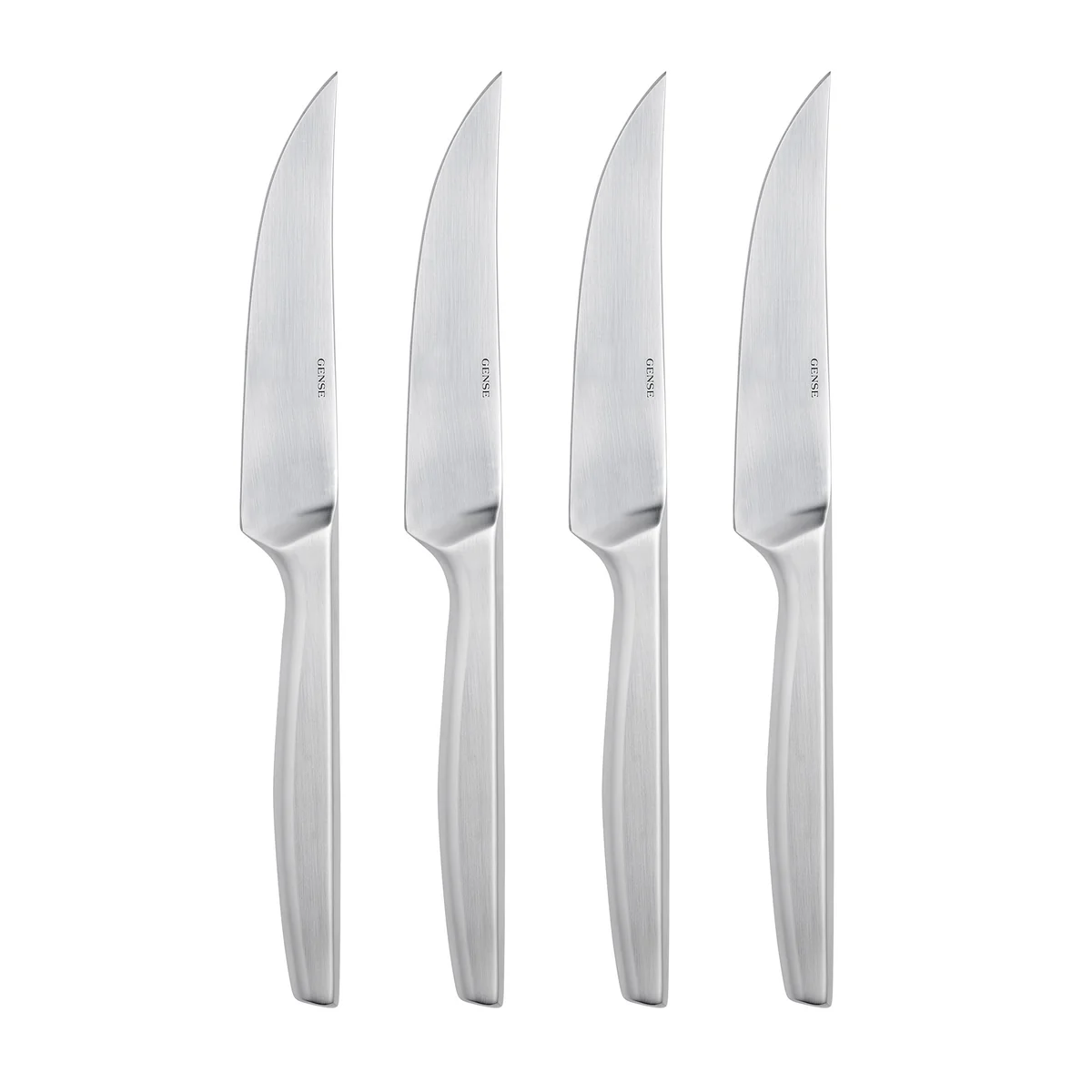 Die Griffe der Steakmesser sind ergonomisch gestaltet und liegen angenehm in der Hand, was eine bequeme Handhabung beim Schneiden ermöglicht. Die schlanke Formgebung des Griffs fügt sich nahtlos in das zeitgemäße und elegante Design der Gense-Produkte ein.