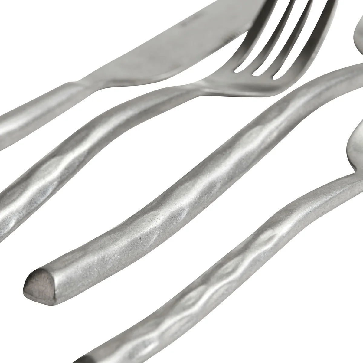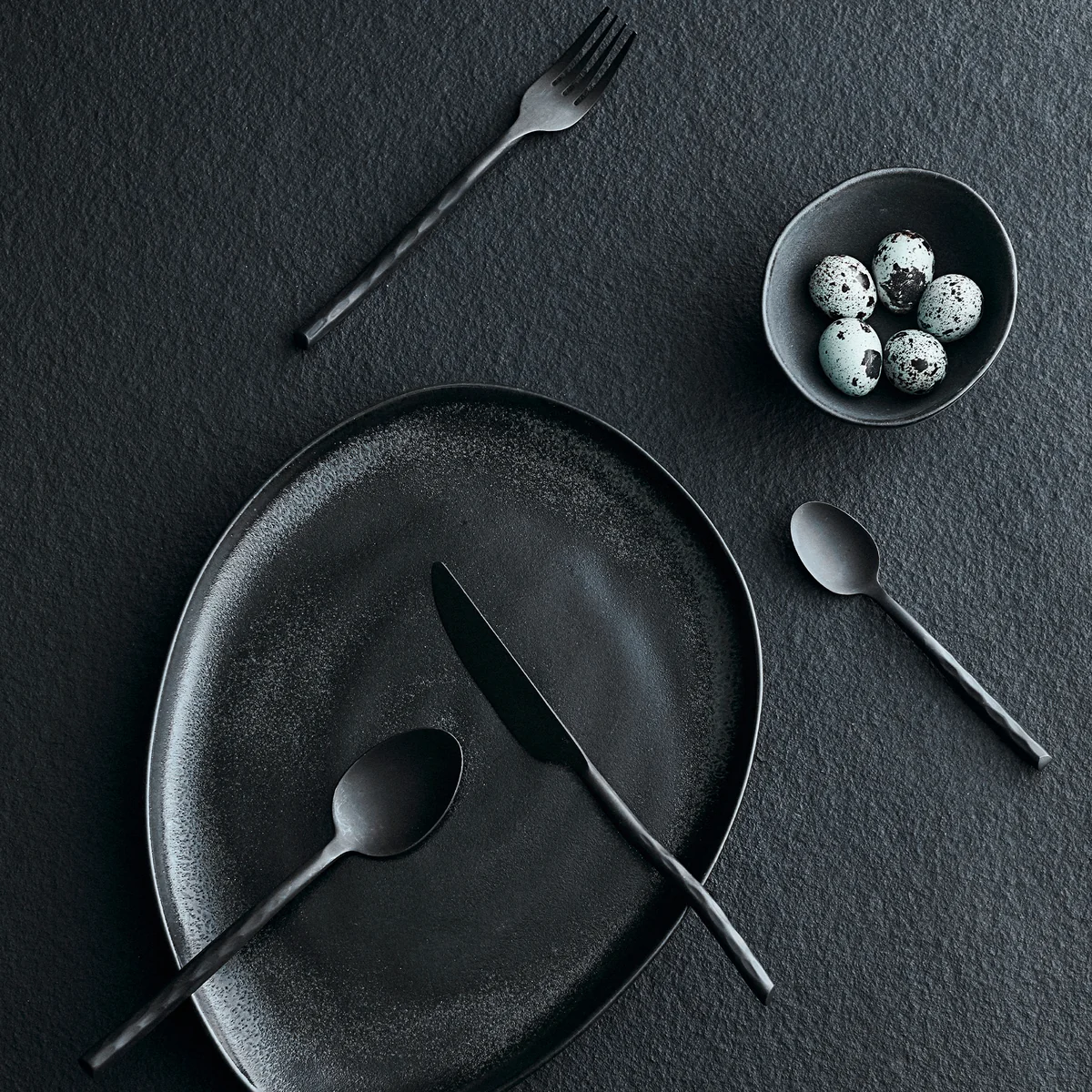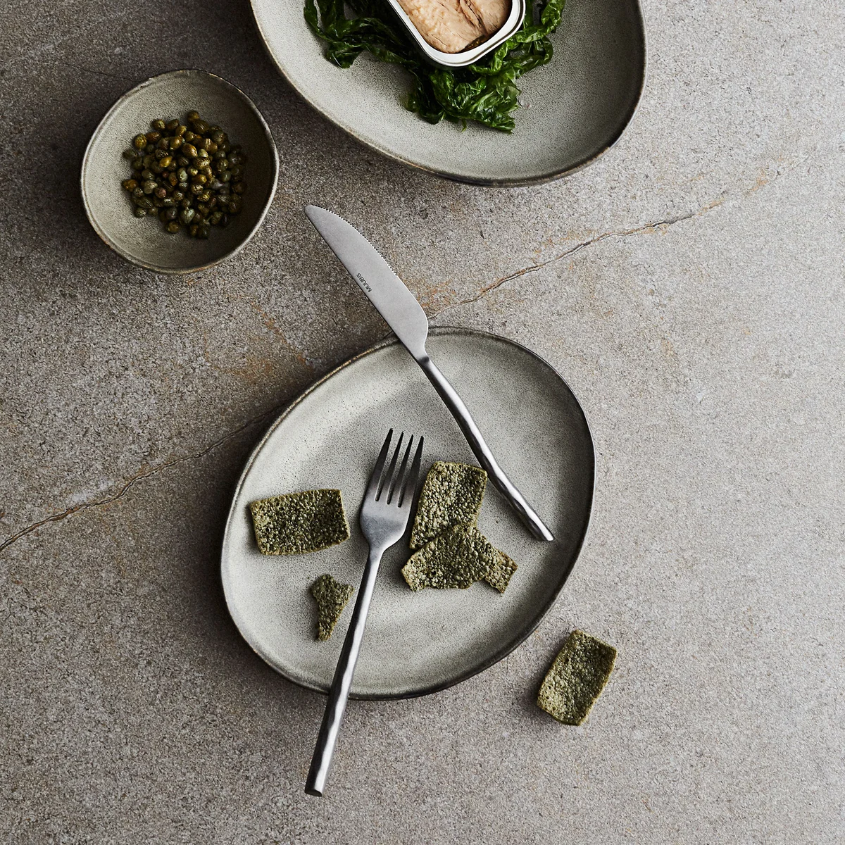 Das Uta Besteck des dänischen Hersteller Muubs ist mit seinen charakteristischen Hammerspuren ein toller Blickfang! Es erhielt seinen Namen durch den japanischen Begriff Utareta, was übersetzt gehämmert/geschlagen bedeutet. Die bewusst unregelmäßige Oberfläche und die schlichte Formgebung verleihen dem Uta Besteck einen authentischen, handgearbeiteten Look. Ob im Alltag oder zu besonderen Anlässen – Uta ist robust, stilvoll und sorgt für einen individuellen Akzent bei jedem gedeckten Tisch.