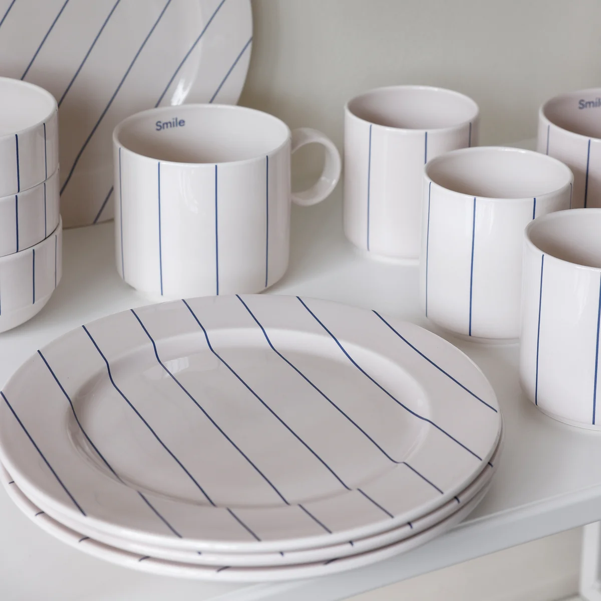 Der Pyjama Jumbobecher von Design Letters. Snacks und Pyjamas sind eine perfekte Kombination, und jetzt kann man sowohl sich selbst als auch die Lieblingsspeisen in ein stilvolles Pyjama-Outfit kleiden. Die Pyjamas Collection ist die ideale Wahl für das Frühstück, die abendlichen Snacks oder den Morgenkaffee. Mit ihren zarten Streifen sieht sie auf dem Tisch fantastisch aus und bringt Charme in das Küchenregal.