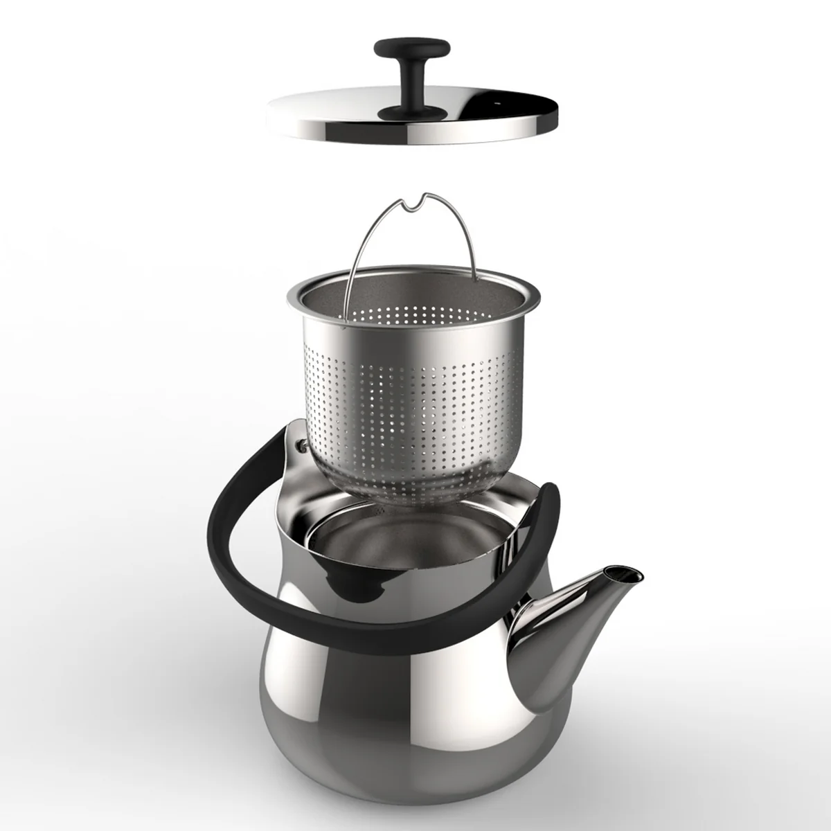 Cha besteht aus 18/10 Edelstahl mit einem Deckelknauf aus thermoplastischem Harz zum Schutz der Hände vor Hitze. Der moderne Teekessel hat ein Fassungsvermögen von 900 ml. Der Boden des Cha Wasserkessel / Teekanne aus Magnetstahl eignet sich für Wärmequellen jeglicher Art, einschließlich von Induktionsherden.