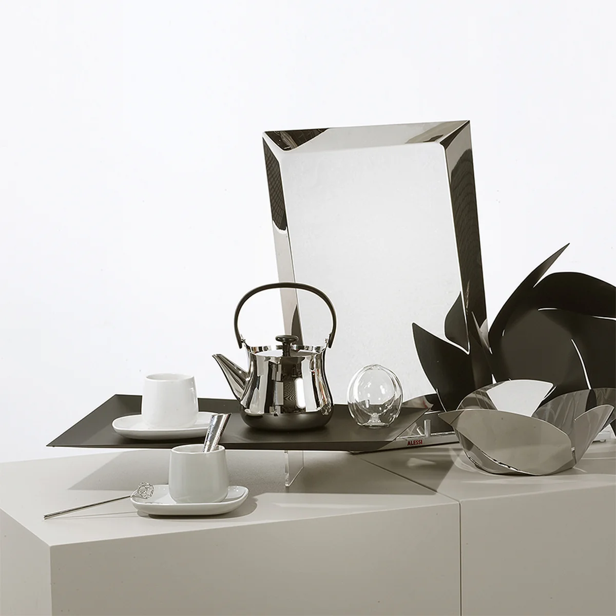 Der geschweißte Ausguss ist mit einem weiteren Filter versehen, der eventuell aus dem Innenfilter ausgetretene Teeblätter auffängt. Dank dieses strukturellen Details kann die Kanne auch ohne Filter, mit den Teeblättern direkt im Korpus, verwendet werden. Die nur scheinbar schlichte Form verbirgt, wie eingehend sich der Designer mit den Einzelheiten seines Projekts befasst hat, das so typisch für den expressiven Puristen Naoto Fukasawa ist: elegant, einfach und dennoch bis ins Kleinste durchdacht.