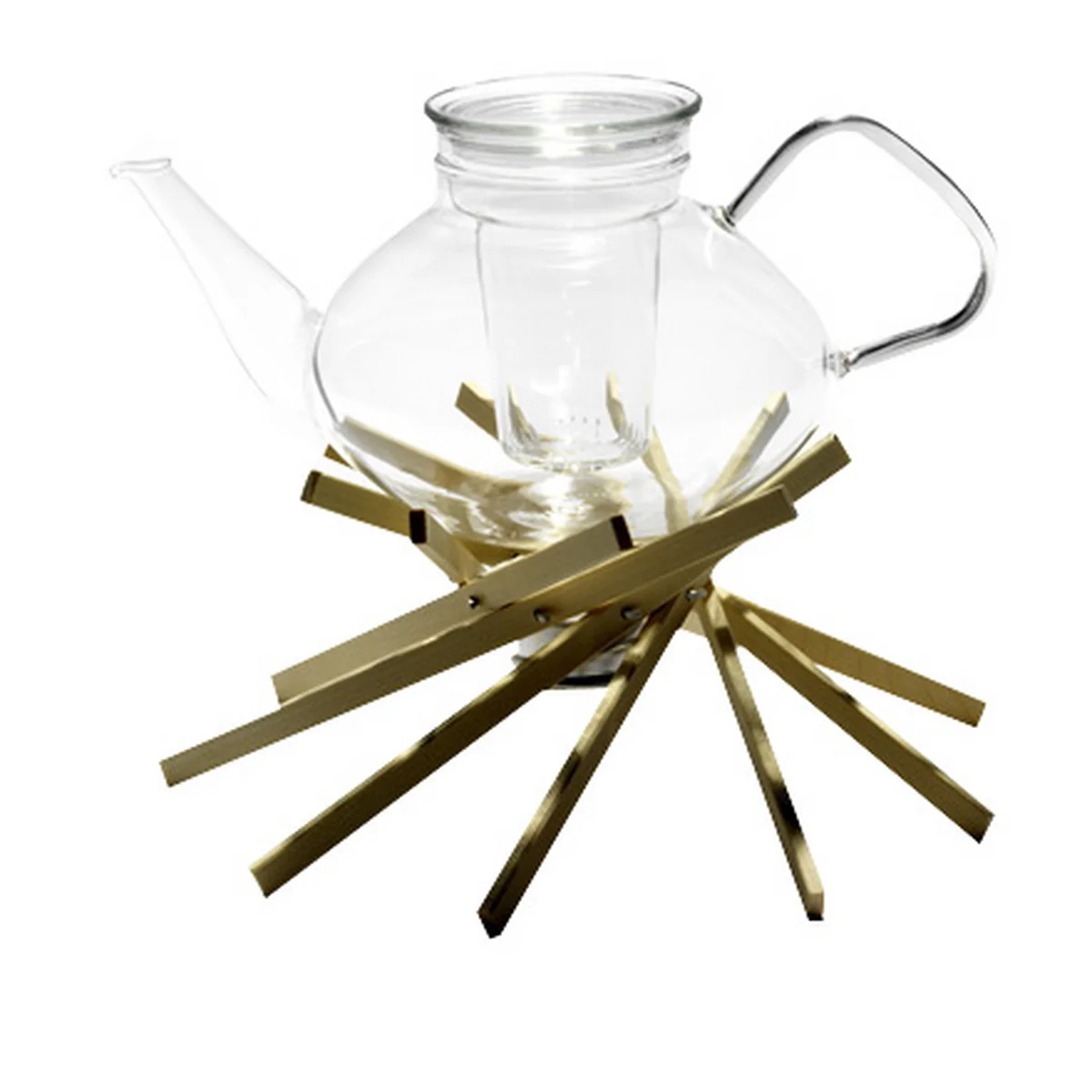 Das Sövchen „keep'ot!“ erinnert in seiner Form an ein gemütliches Lagerfeuer auf dem der Tee warmgehalten wird. Das Design stammt von Christoph Matthias, einem Industriedesigner und Lichtplaner mit Sitz in München. Die „Scheite“ des „keep'ot!“ Stövchens sind aus geöltem Nussbaum gefertigt und werden durch Edelstahlbeschläge miteinander verbunden, die ein Teelicht und die Kanne halten. Durch einen einfachen Dreh wird „keep'ot!“ aufgestellt.