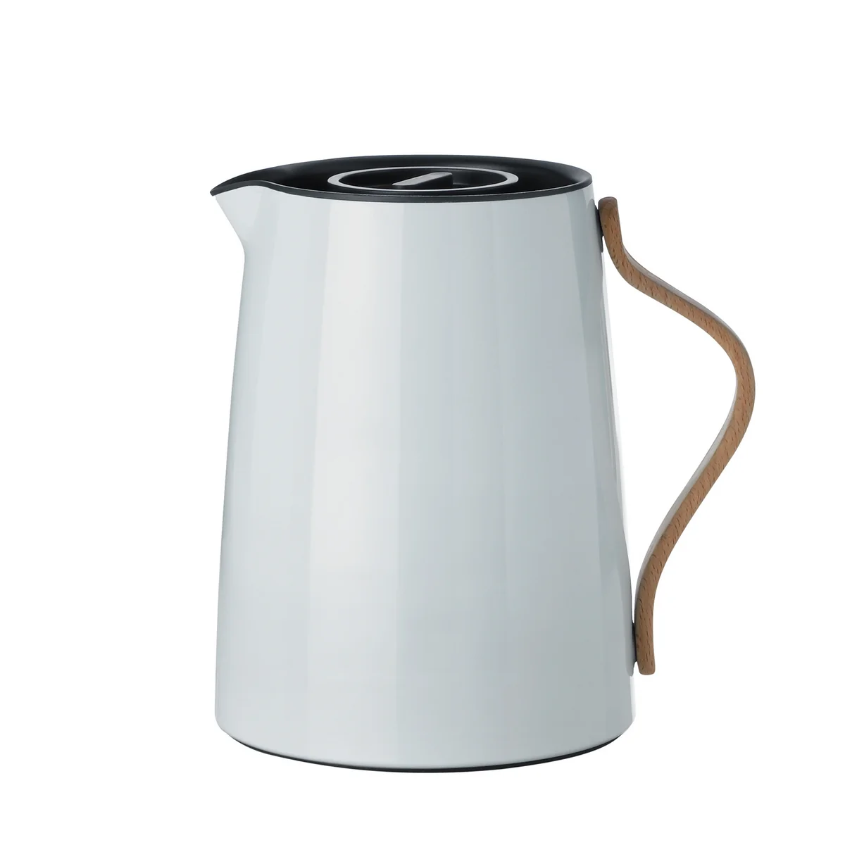 Eine Fusion von Tradition und Innovation verleiht der Stelton Emma Teeisolierkanne ihren harmonischen Körper aus hochglanzlackiertem Edelstahl. Der Griff aus Buchenholz gibt der Kanne eine moderne Note und bedient sich wie früher aus den Materialien der Natur. Steltons Emma Teekanne hat eine blaue bzw. graue Farbnuance, die herrlich zu den bläulichen und gräulichen Ton-in-Ton-Farben der Serie passt.