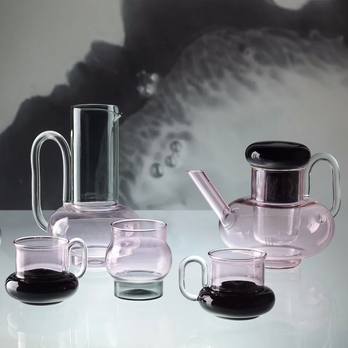 Nicht nur das Material verweist auf die Chemie, auch die Kolben- und Zylinderformen erinnern stark an die bekannten Glasgefäße aus dem Labor. Für einen besonderen Blickfang sorgt zudem die harmonische Farbkombination aus transparentem Rosa und kräftigem Grau, die sich auch bei der zugehörigen Bump Teekanne von Tom Dixon wiederfindet. Gemeinsam entsteht ein hochwertiges Ensemble, mit dem sich Kaffee, Tee oder Kakao ansprechend servieren lässt.