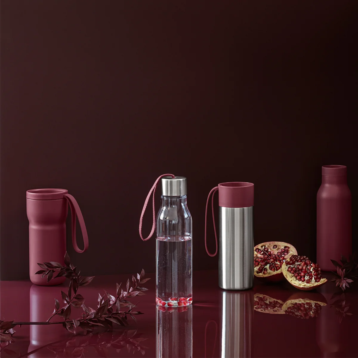 Für einen ganzheitlich skandinavischen Look kann die Urban Thermosflasche mit dem Nordic Kitchen Thermobecher, der Glastrinkflasche und der Rise Isolierkanne von Eva Solo kombiniert werden.