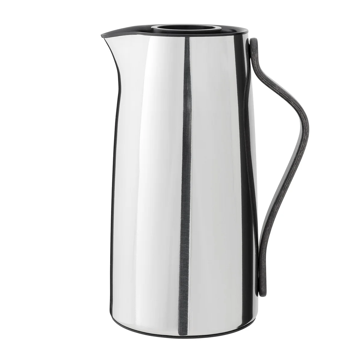 Stelton fertigt den Korpus der von HolmbäckNordentoft gestalteten Emma Kaffeeisolierkanne aus Edelstahl, auch der Thermoeinsatz besteht aus Edelstahl.