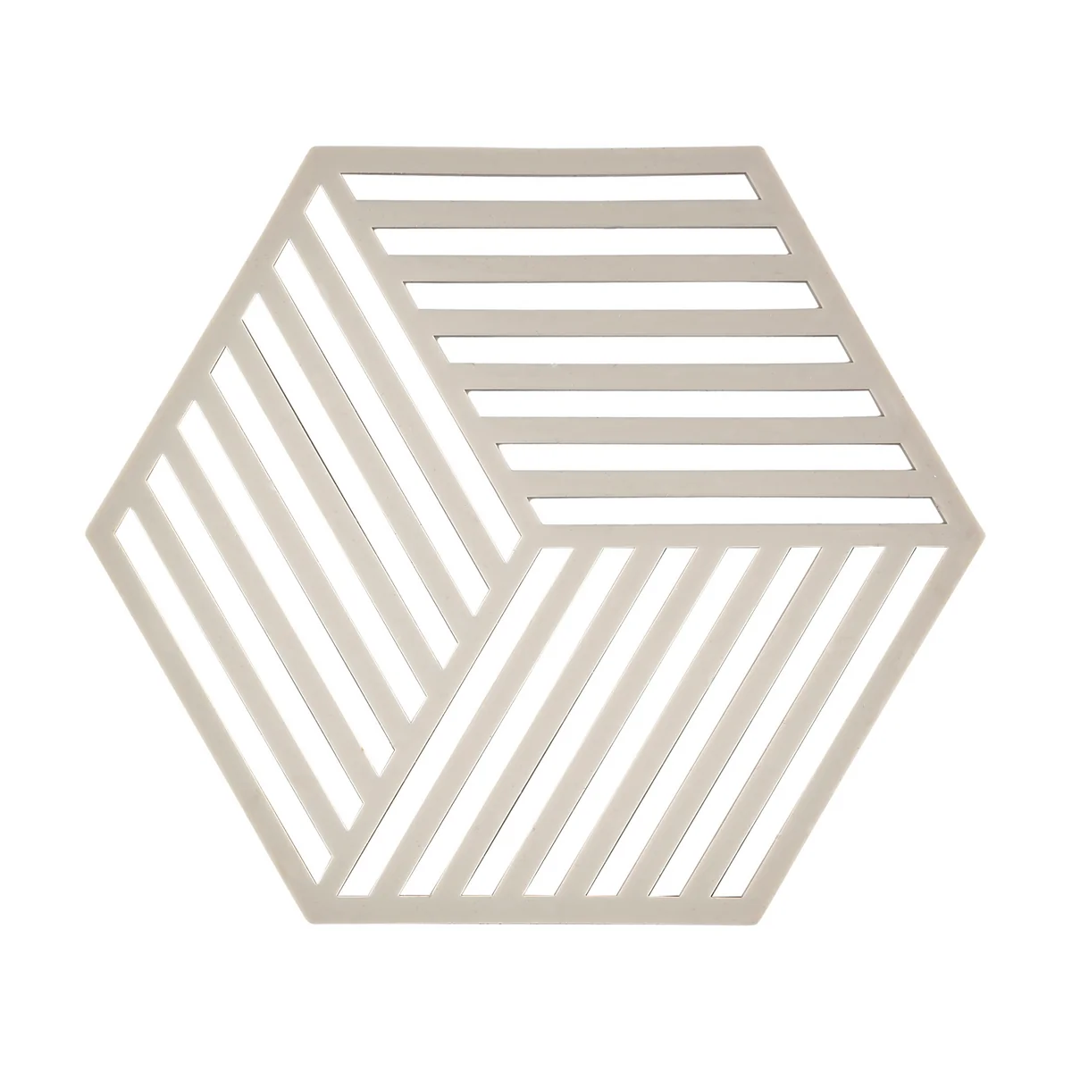 Mit Hilfe des Hexagon Untersetzers von Zone Denmark können heiße Töpfe, Pfannen und Auflaufformen einfach auf dem Esstisch abgestellt werden, ohne dass die empfindliche Oberfläche dabei verbrannt wird. Aus strapazierfähigem Silikon gefertigt, ist der Untersetzer bis zu 250 °C hitzebeständig und kann, bei Bedarf, in der Spülmaschine gereinigt werden.