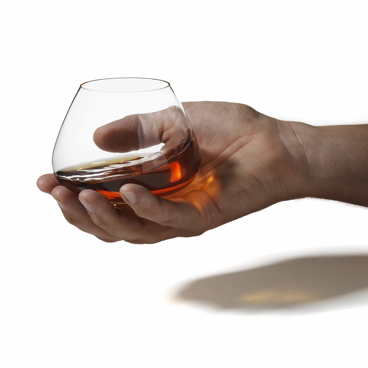 Der Cognac-Schwenker von Normann Copenhagen ist eine Vereinigung von Funktion und Hochgenuß. Er wurde von der dänischen Glas- und Keramikdesignerin Rikke Hagen mit deutlicher Rücksicht auf Bouquet, Temperatur und Volumen entworfen.
