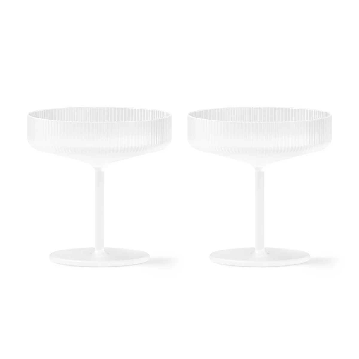 Das Ripple Champagnerglas von Ferm Living zeichnet sich durch seine geriffelte Oberflächenstruktur aus, die ihm den besonders edlen Look der 20er Jahre verleiht. Das klassische Schaumweinglas ist mundgeblasen und sorgfältig verarbeitet, sodass der gute Tropfen Champagner stilvoll genossen werden kann.