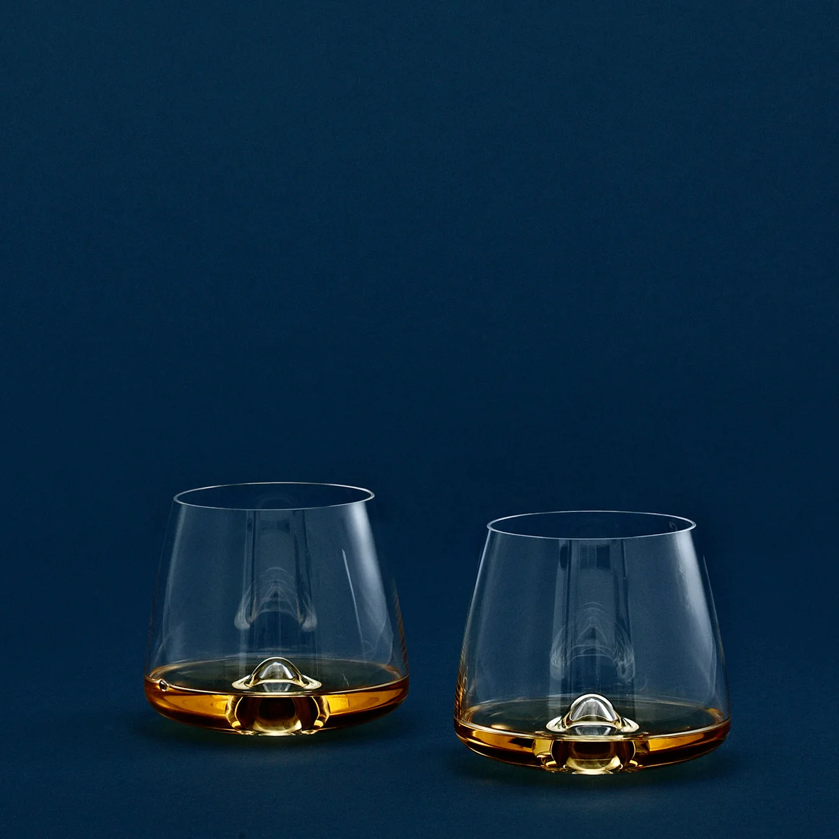 Rikke Hagen erzählt: „Wie schon bei dem Entwurf für das Cognac Glas, wurde ich auch bei dem Whisky Glas von meiner Leidenschaft für das Sammeln von Steinen am Strand inspiriert. Das Spiel mit einem Stein in der Hand, in ruhigen und meditativen Bewegungen, kann in ein funktionelles und ästhetisches Design umgesetzt werden. Die Rundung an der Unterseite bietet einen natürlichen Griff um das Glas herum und die kleine Blase erhebt die Eiswürfel elegant, ganz wie Miniatur-Eisblöcke.“