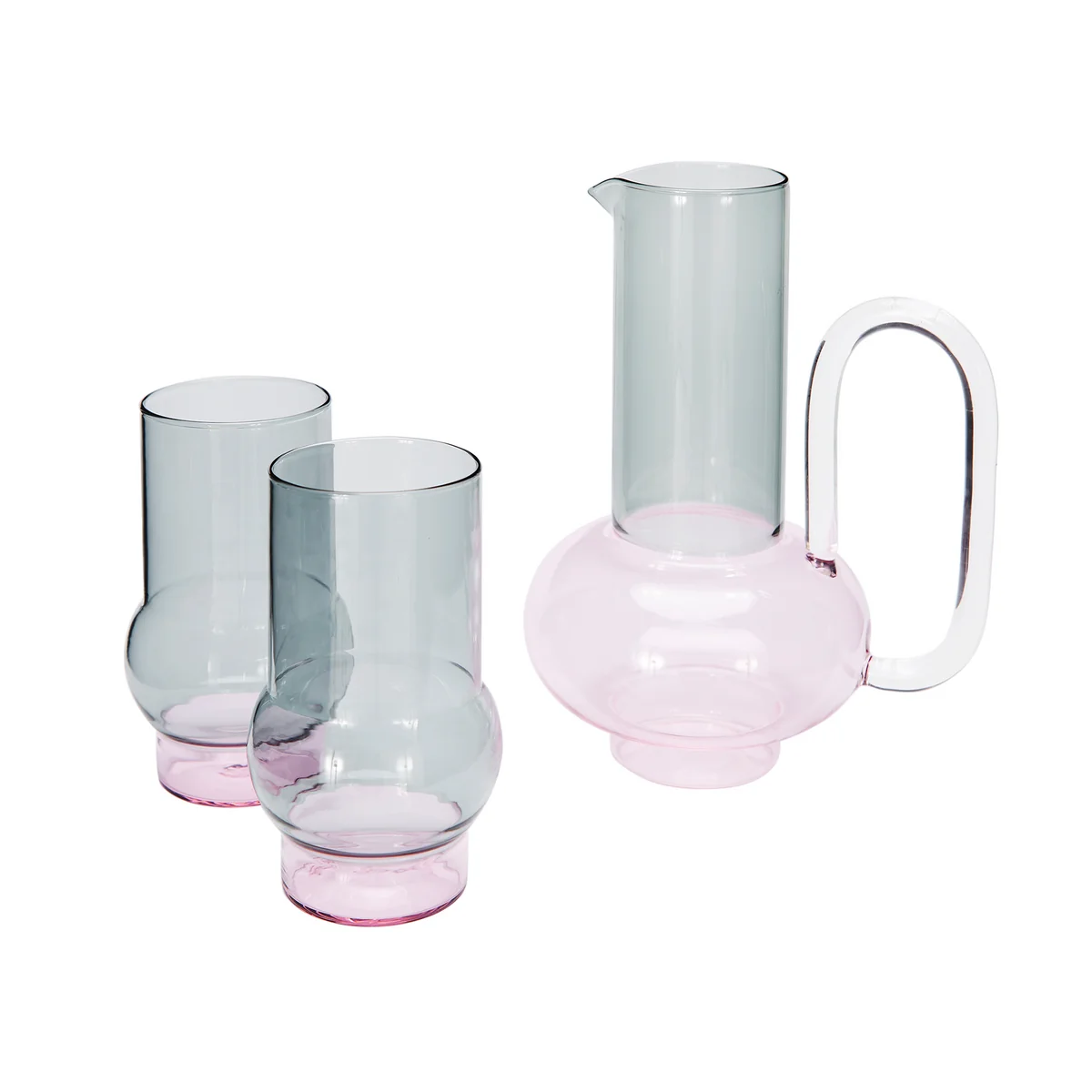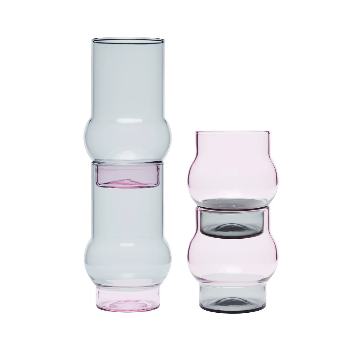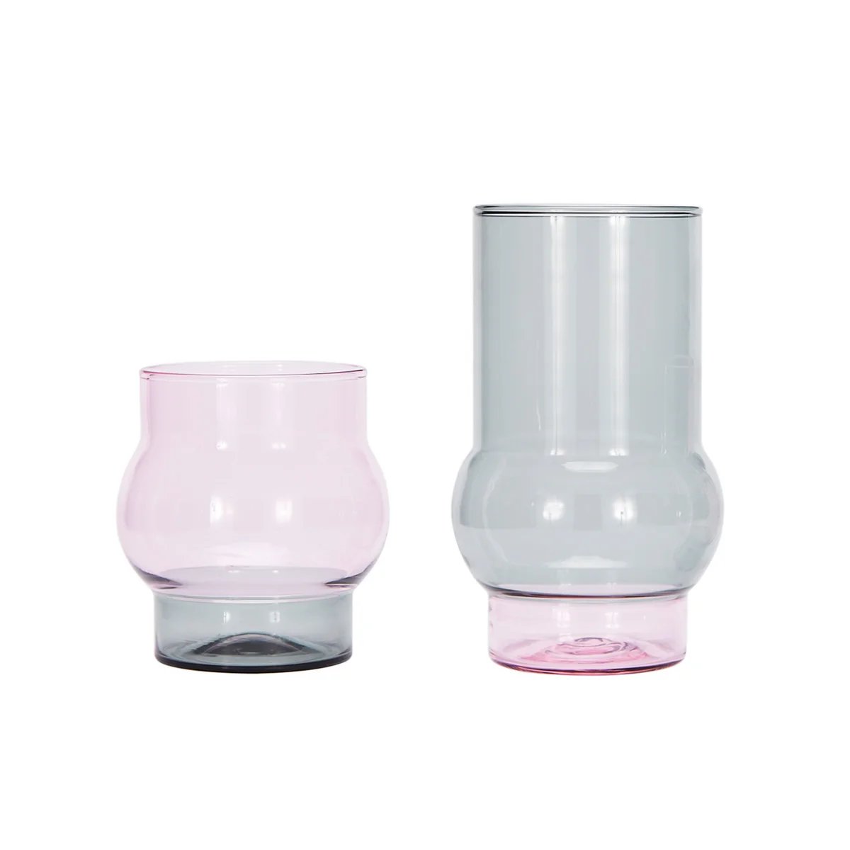 Die Bump Trinkgläser im 2er-Set von Tom Dixon zeichnen sich durch ihre außergewöhnliche Silhouette aus, die von bauchigen und zylindrischen Formen geprägt ist. Weitere Akzente werden durch die Farbkombination aus transparentem Rosa und zartem Rauchgrau geschaffen, die leicht verspielt wirkt und daher für Lebendigkeit auf jedem Tisch sorgt.