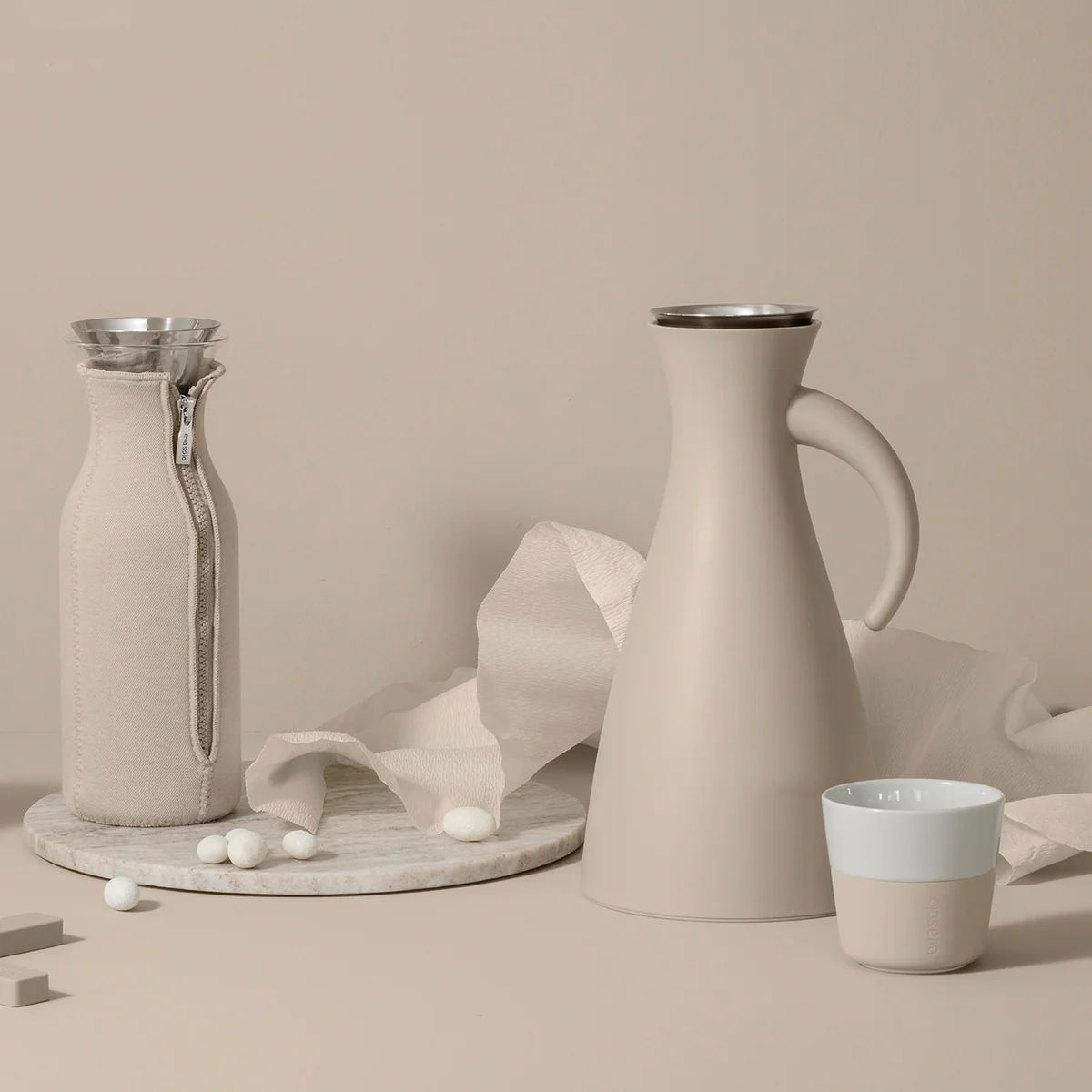 In den Caffé Lungo-Bechern von Tools Design für Eva Solo ist für 230 ml Kaffee Platz, was genau den Standard-Einstellungen auf vielen gebräuchlichen Kapsel-Kaffeemaschinen entspricht. Der Kaffeebecher ist aus Porzellan und mit einer Silikon-Hülle ummantelt. Diese sorgt für einen guten Halt und vermeidet verbrannte Finger.