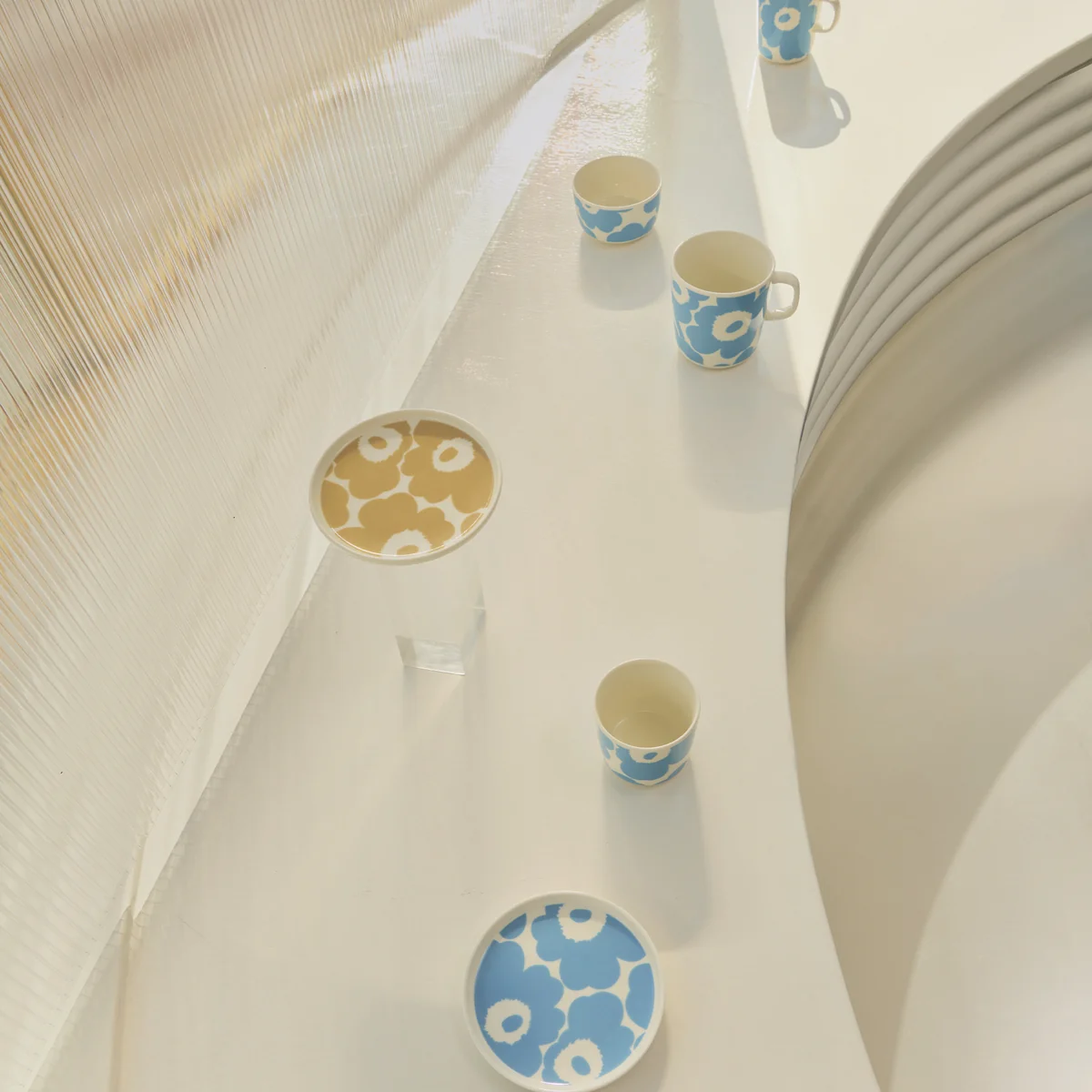 Der Oiva Unikko Becher ohne Henkel von Marimekko wird von dem berühmten Blumenmuster von Maija Isola verziert. Unikko, was auf Deutsch "Mohn" bedeutet, ist das bekannteste und am weitesten verbreitete Muster des finnischen Traditionsherstellers Marimekko.
