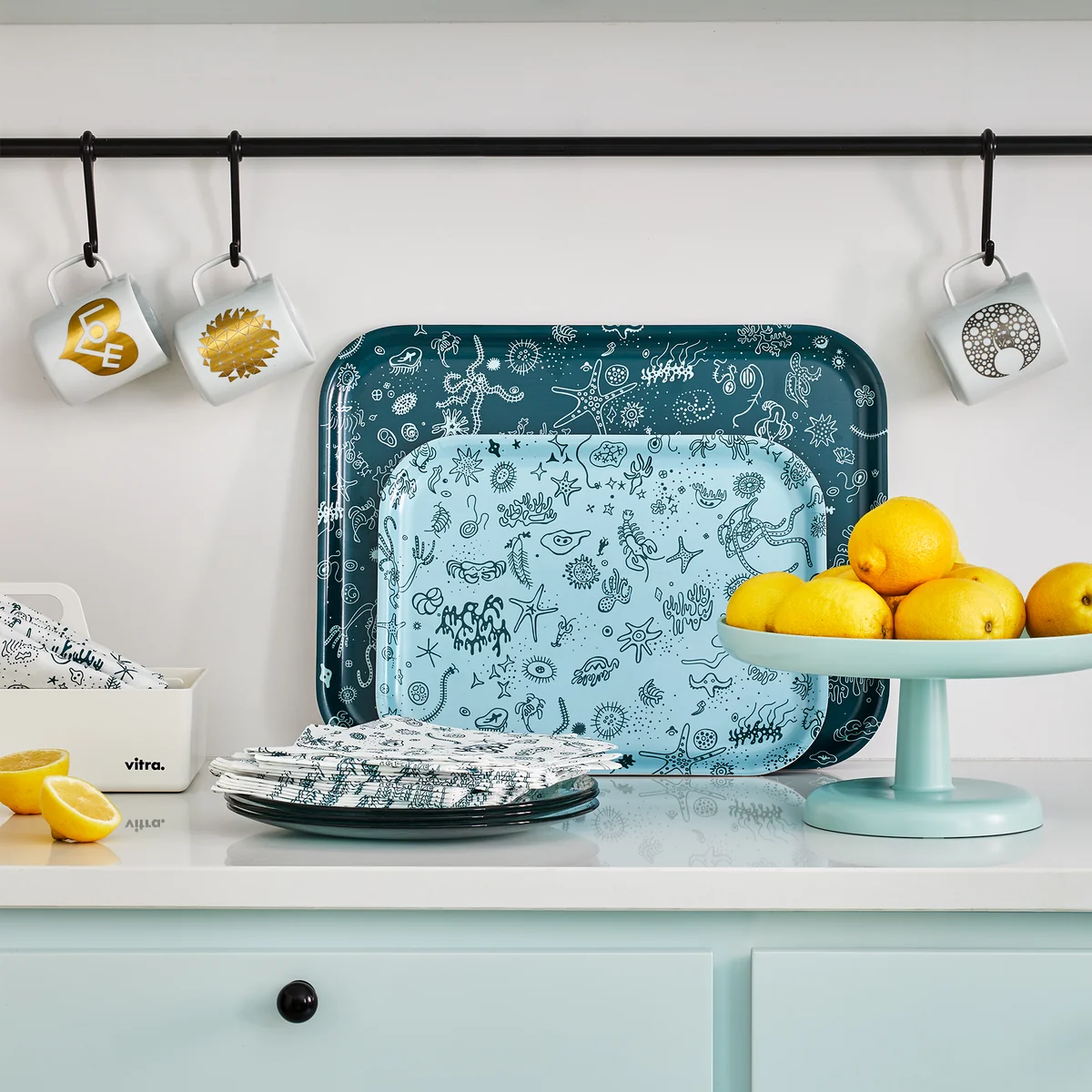 Als Textildesigner schuf Alexander Girard über 300 verschiedene Grafiken für das Möbelunternehmen Herman Miller. Ergänzend dazu, war er auch als Möbel-, Ausstellungs- und Interiordesigner erfolgreich tätig. So entwarf er unter anderem für das Restaurant La Fonda del Sol Menükarten, Servietten und Geschirr. Diese umfangreiche Welt war Ausgangspunkt für die Home Complements Kollektion, für die Vitra in Zusammenarbeit mit der Familie Girard, einige Motive ausgewählt hat, um sie auf Wohnaccessoires und Textilien zu neuem Leben zu erwecken.
