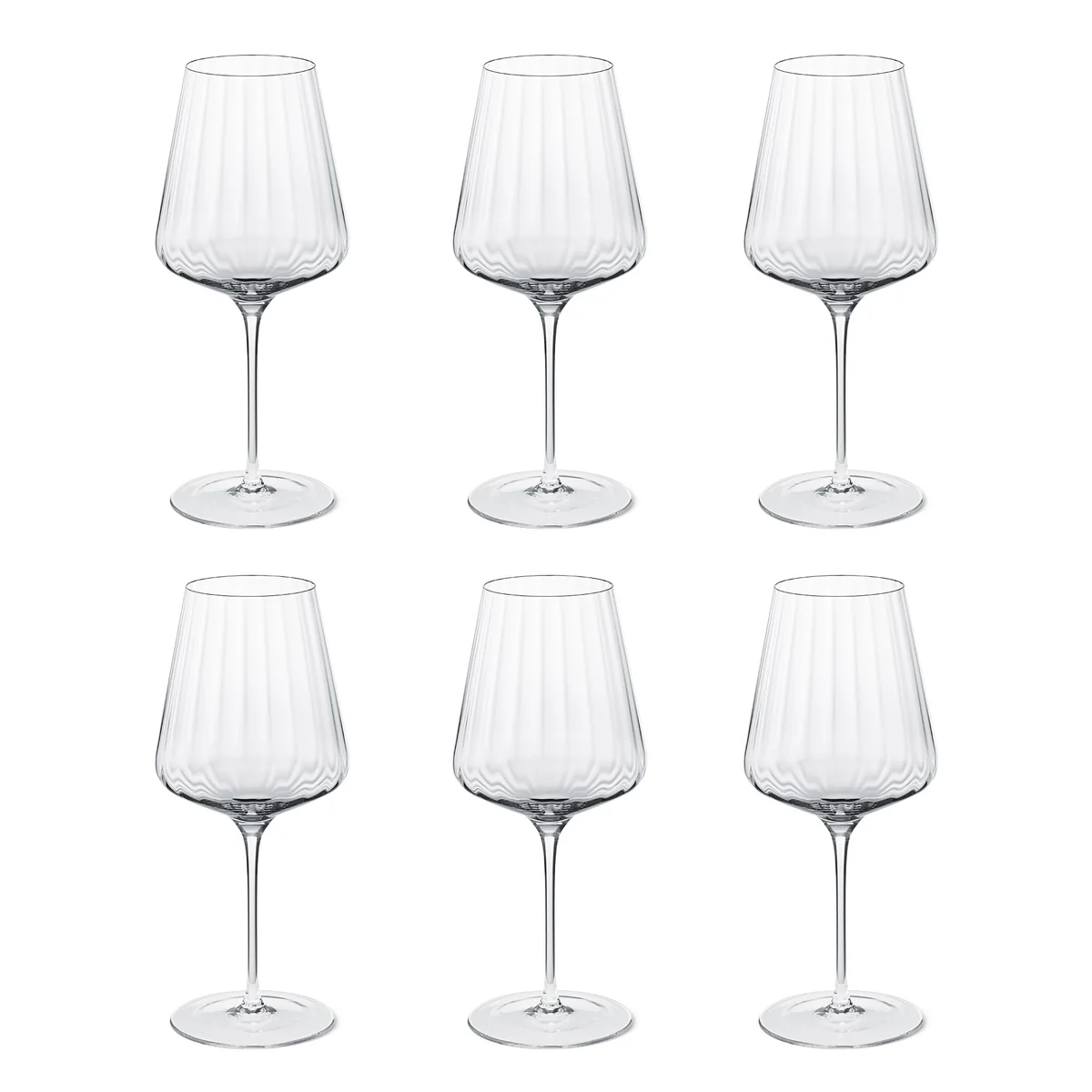 Das Bernadotte Rotwein Glas von Georg Jensen ist ein modernes Weinglas aus bleifreiem Kristall. Das Glas begeistert mit seinen Rillen à la Art Déco, die den Weingenuss exklusiver gestalten. Dank den optischen Vorteilen der Rillen, ermöglichen sie, dass sich das Rotwein Glas optimal greifen lässt, selbst bei gekühltem Wein. Die Bernadotte Gläser (450 ml) sind im 6er-Set erhältlich.