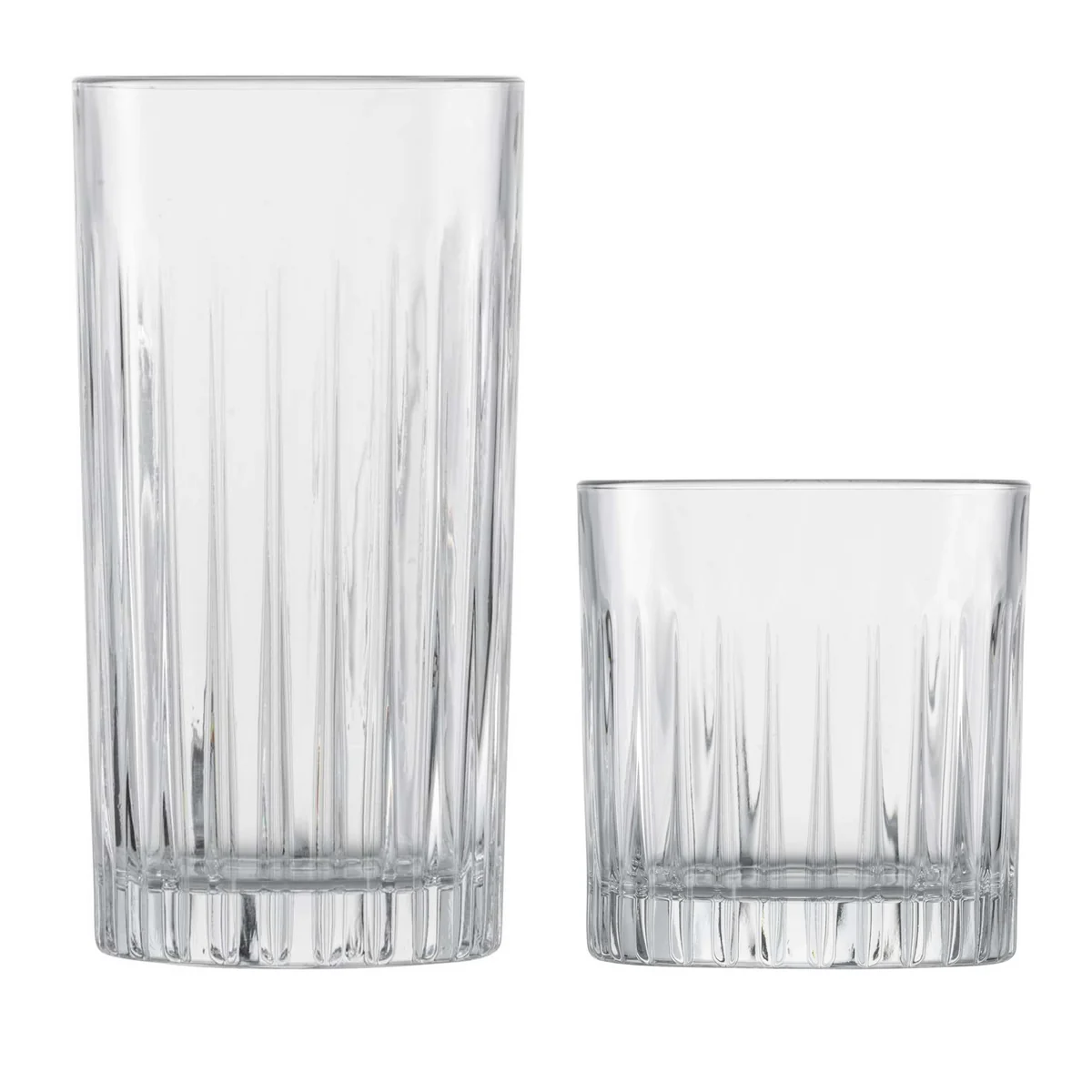 Das Gläser-Set der Stage Kollektion von Schott Zwiesel besteht aus Longdrink- und Whisky-Gläsern. Beide zeichnen sich durch ihr geradliniges Design und die geriffelte Struktur aus. Diese ist nicht nur optisch schön anzusehen, sondern sorgt auch für einen besseren Halt der Gläser. Im Whiskyglas können sich die verschiedenen Aromen frei entfalten, sodass der markante Geschmack des Whiskys voll ausgekostet werden kann. Das Longdrinkglas eignet sich nebenbei für ein frisches Glas Wasser. Wer seinen Alkohol lieber gemischt trinken möchte, kann aus dem Stage Longdrink Glas einen Cuba Libre, Wodka Lemon oder ein anderes Lieblingsgetränk genießen. Beide zusammen sind die perfekte Kombination für einen stilvollen Abend.