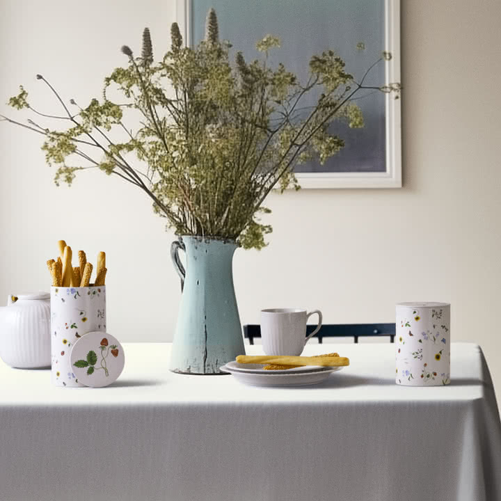 Die Hammershøi Summer Vorratsdose von Kähler Design, verbindet funktionale Aufbewahrung mit eleganter, skandinavischer Ästhetik. Die ikonische Hammershøi-Rillenstruktur trifft auf ein zartes, handgemaltes Blumen- und Naturmotiv, das an die Leichtigkeit des Sommers erinnert.
