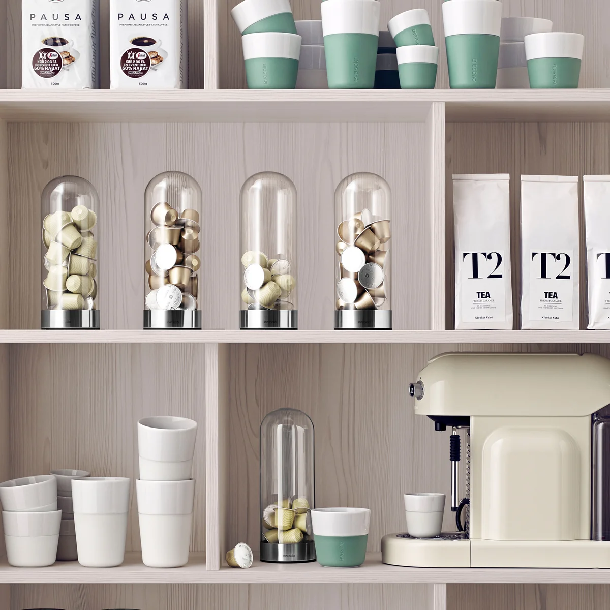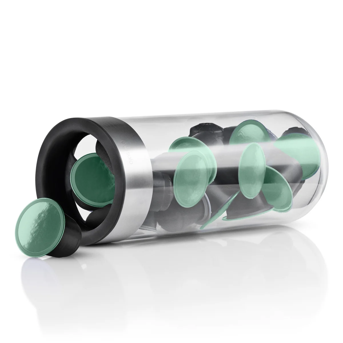 Schluss mit lose herumliegenden Kaffeekapseln: In dem dekorativen Kaffeekapselspender von Eva Solo sind die kleinen Koffein-Spender gut verstaut.