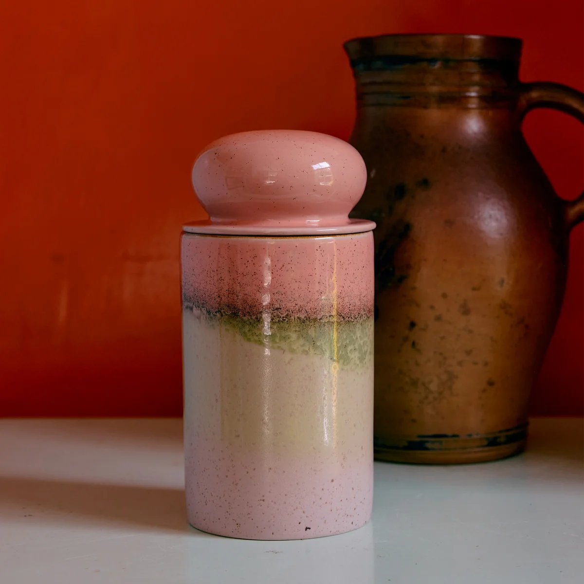 Die 70´s Aufbewahrungsdose von HKliving wird in Handarbeit aus Keramik hergestellt und ist in verschiedenen Farben erhältlich. Aufgrund der Herstellung und der Materialien ist jedes Stück ein Unikat.