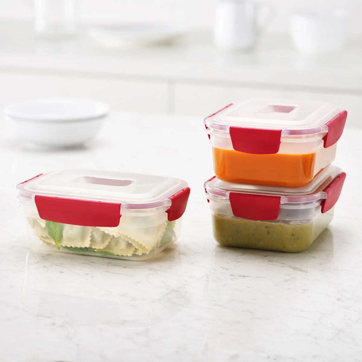 Die Boxen sind luft- und wasserdicht, wodurch sie sich perfekt für unterwegs nutzen lassen. Auf der Arbeit oder auf Ausflügen eignen sich die Nest Lock Vorratsdosen daher bestens zur Mitnahme von Snacks und Mahlzeiten. Darüber hinaus sind die kompakten Boxen spülmaschinenfest, mikrowellengeeignet und können auch zum Einfrieren genutzt werden. Alle Boxen sind aus BPA-freiem Kunststoff gefertigt.