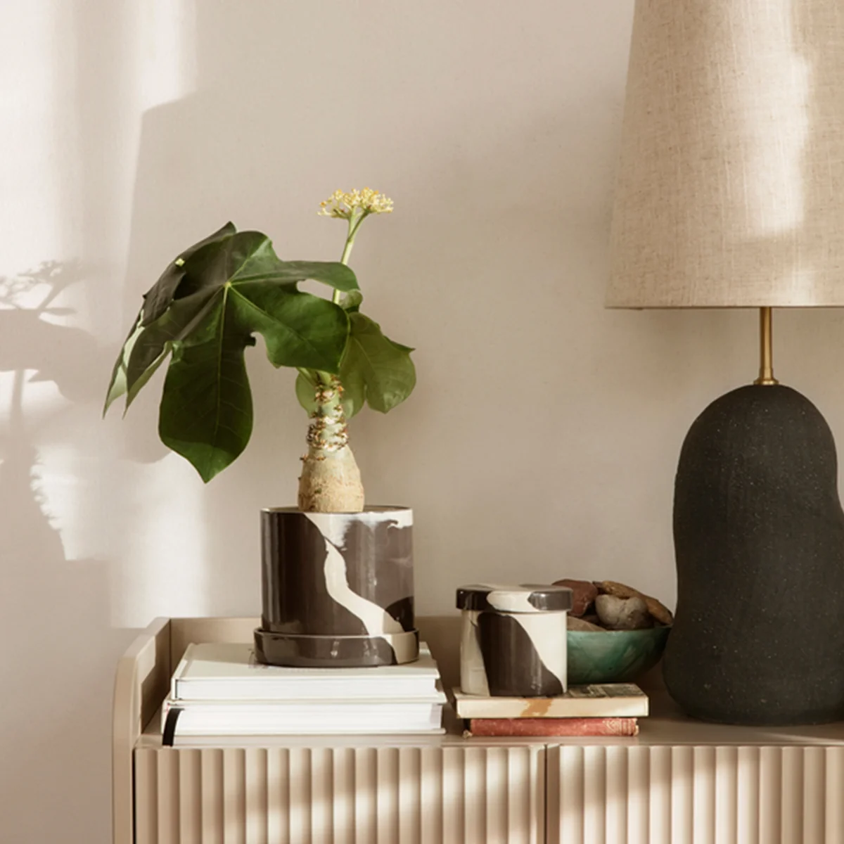 Der Behälter von Ferm Living wird aus Steingut gefertigt und anschließend mit einer Glasur überzogen, die für eine glänzendes, glattes Finish sorgt.