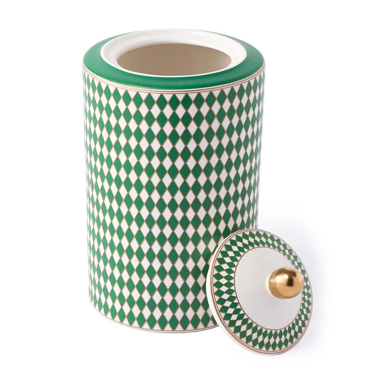 Aufbewahrungsdose aus Porzellan mit Rautendesign