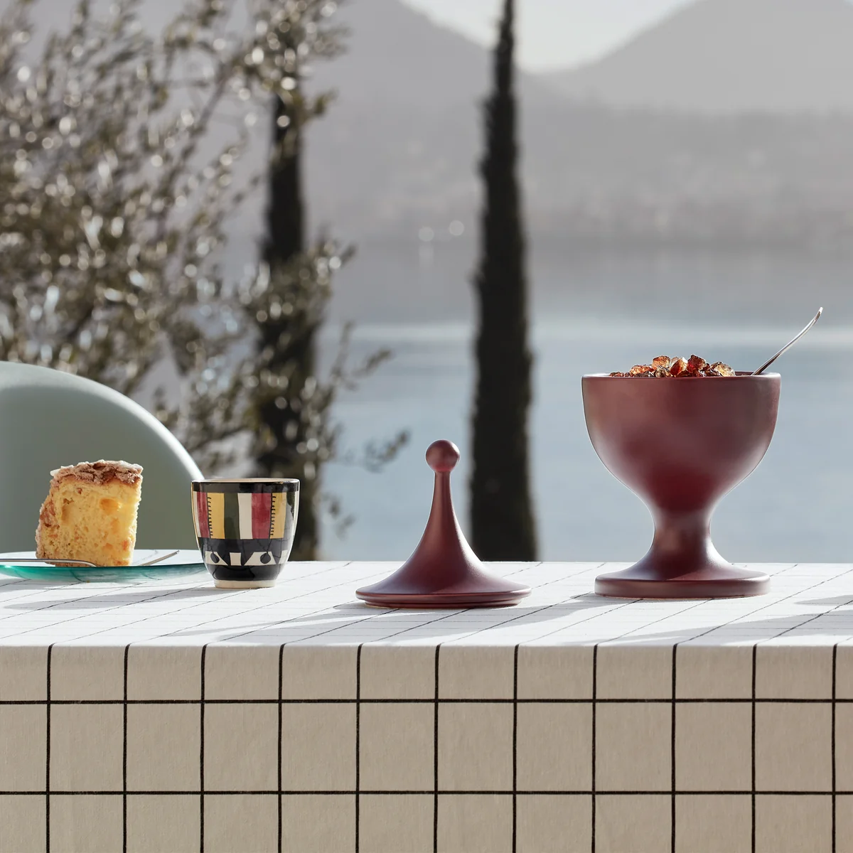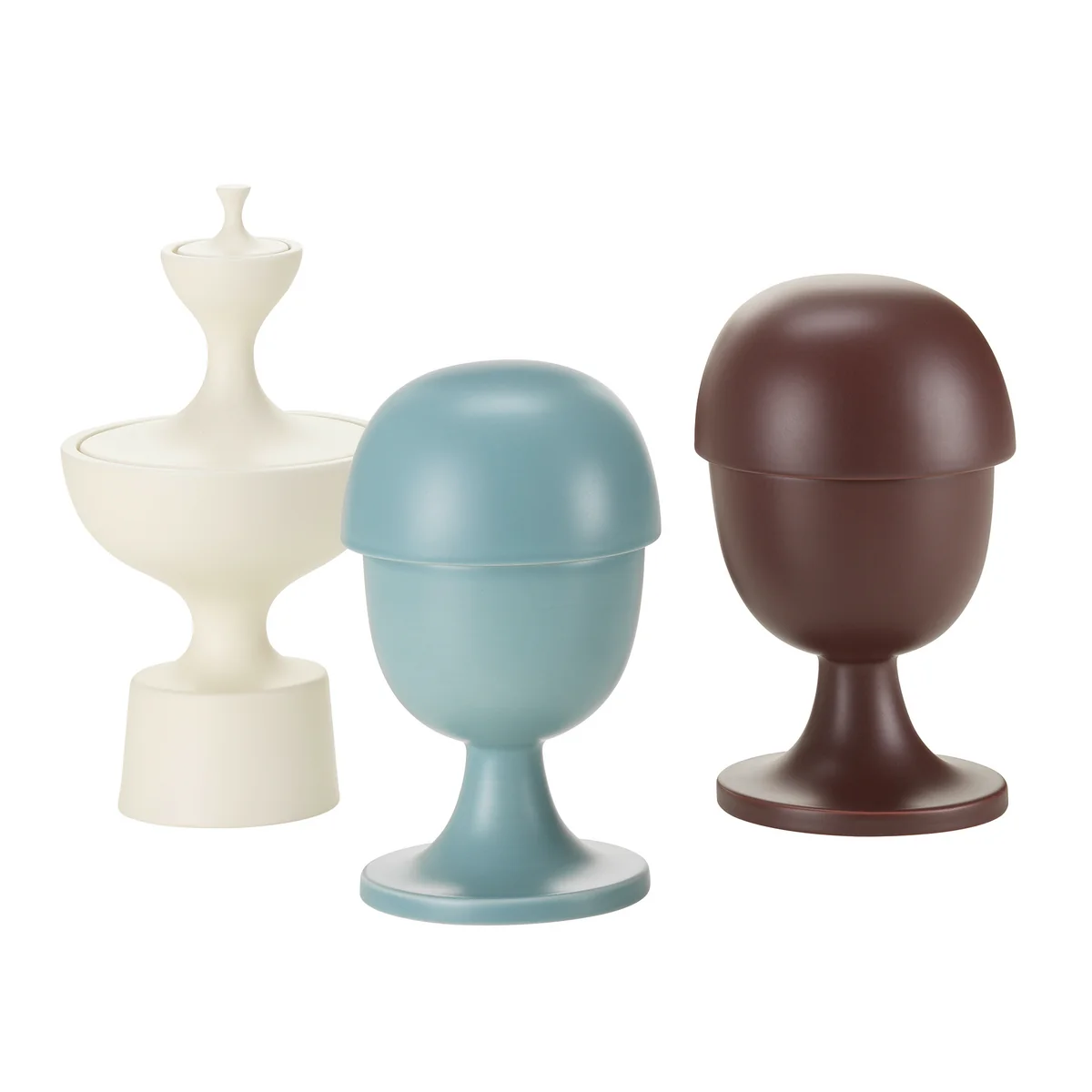 Der Entwurf stammt vom amerikanischen Architekten Alexander Girard, der die Gefäße 1952 eigenhändig aus Holz drehte. In Zusammenarbeit mit der Familie Girard hat das Schweizer Studio Vitra nun die Gefäße aus Keramik neu aufgelegt.