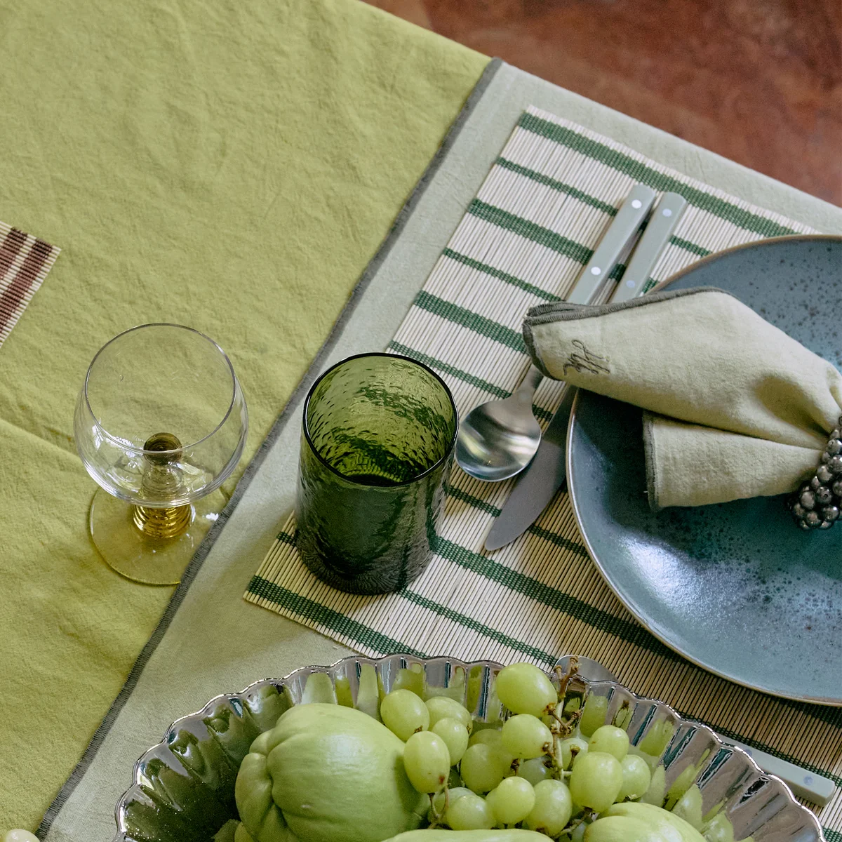 Das hohe Tube Trinkglas von HKliving greift die markante Designsprache der Kollektion auf: farbiges Glas mit subtil unregelmäßiger Oberfläche, die das Licht effektvoll reflektiert. Mit seiner großzügigen, zylindrischen Form wirkt es zugleich modern und elegant – ideal für Longdrinks oder sprudelndes Wasser.