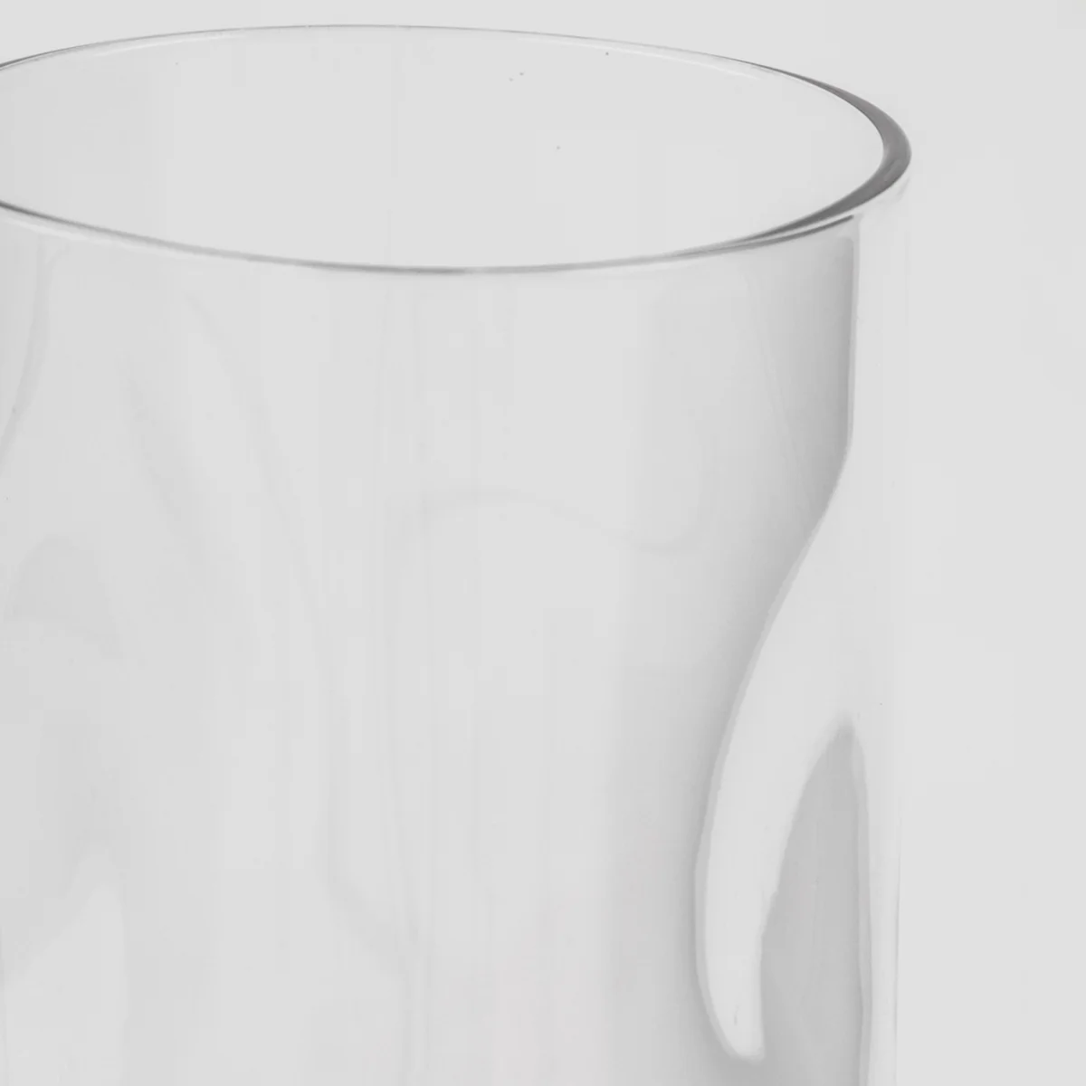 Charakteristisch ist der strukturierte, geometrische Kelch, der ein faszinierendes Lichtspiel erzeugt, sobald das Glas auf Licht trifft. Die solide Form und der kurze Stiel unterstreichen den zeitgemäßen, lässigen Look und sorgen gleichzeitig für eine ausgewogene, harmonische Silhouette.