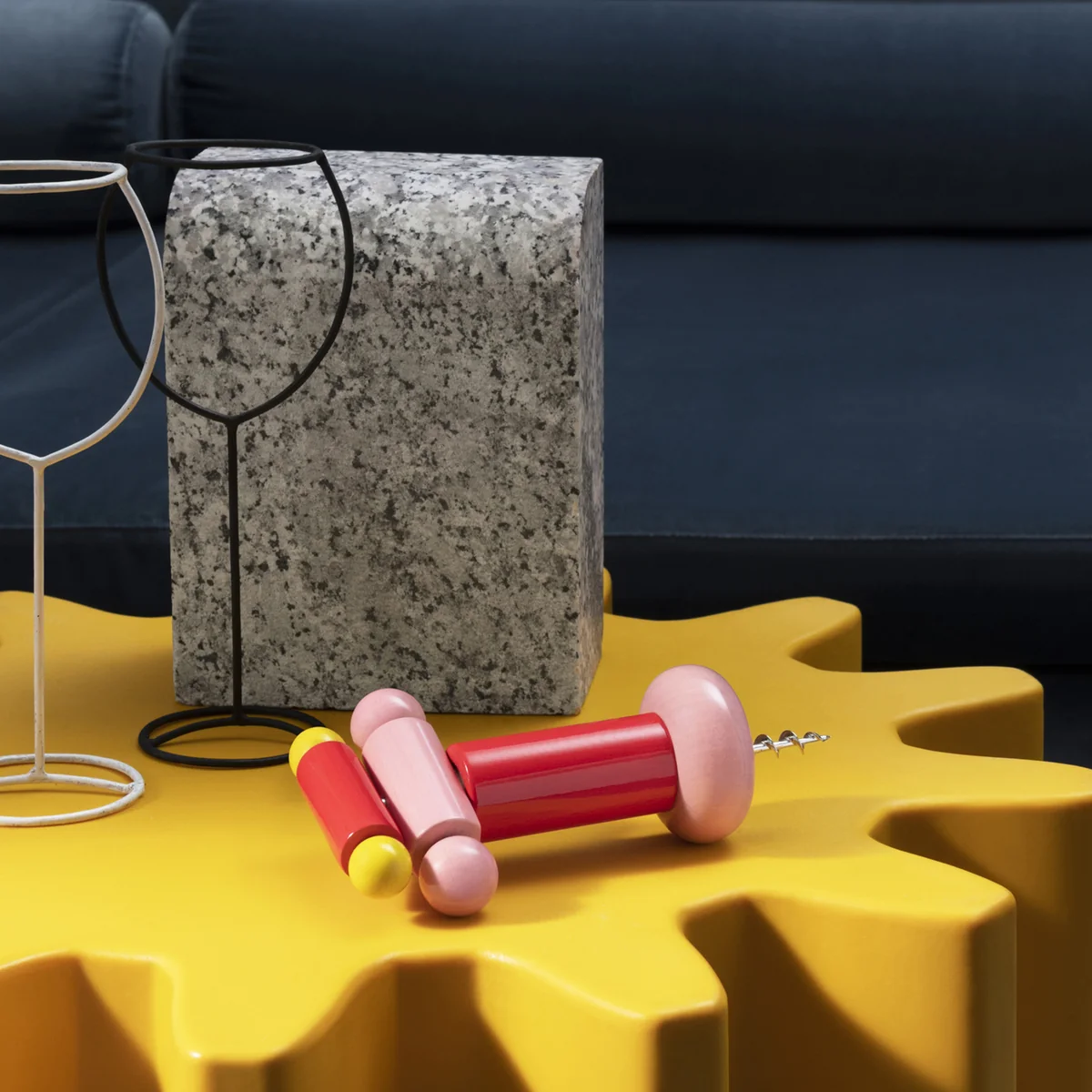 Charakteristisch für die außergewöhnlichen Designs von Ettore Sottsass, zeigt sich der Twergi Korkenzieher in fröhlichen Farben und verschiedenen miteinander kombinierten Elementen. Die organischen Formen vereinen sich zu einem ergonomischen Design, das angenehm in der Hand liegt. Durch sein farbenfrohes Äußeres wird der hölzerne Korkenzieher auch nach der Anwendung zum spielerischen Accessoire auf dem Tisch.