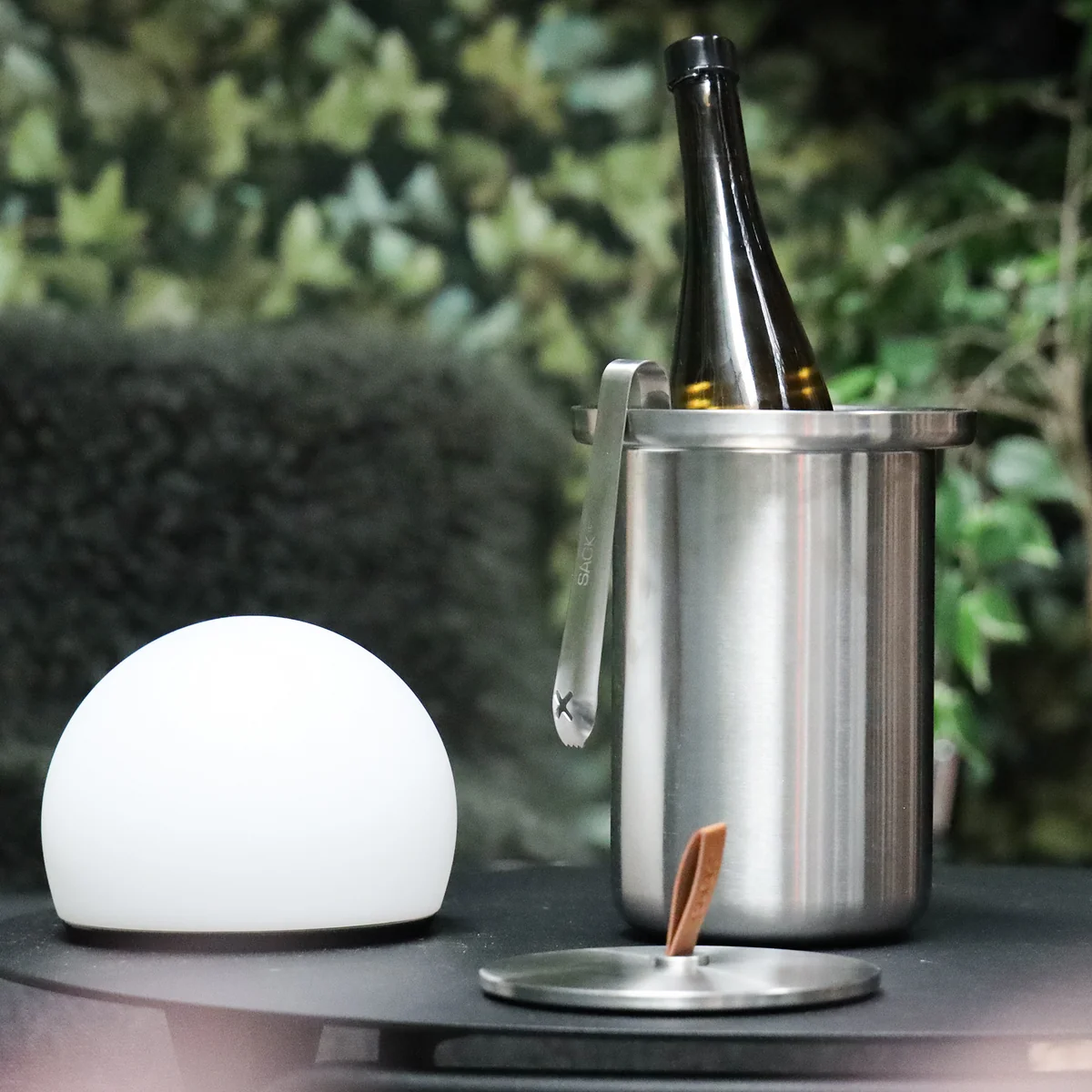 Der Weinkühler des dänischen Herstellers SACK it begeistert mit seinem schlichten Design und seiner geometrischen Form. Dank des polierten, rostreifen Stahls und des Ledergriffs wirkt der Weinkühler insgesamt überaus elegant und wird zum Blickfang im Innen- und Außenbereich Ihres Zuhauses. Er kann sowohl alleine genutzt werden, eignet sich jedoch ebenso ideal für die Kombination mit dem Patio Indoor / Outdoor Ständer, welcher als Verlängerung fungieren kann.