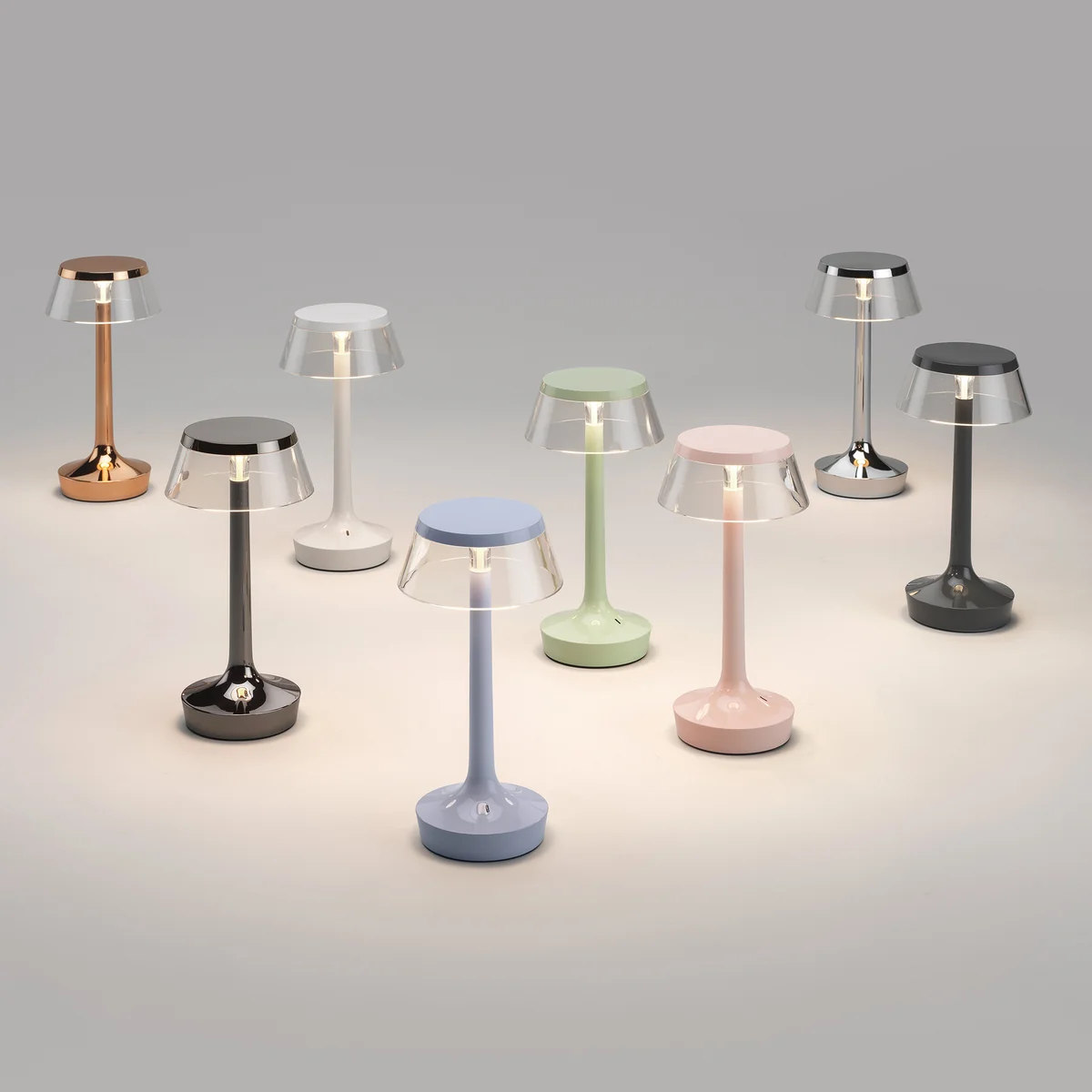 Die Bon Jour Unplugged LED Akku-Tischleuchte Color Tune von Flos vereint ikonisches Design mit modernster Lichttechnologie – kabellos, mobil und individuell einstellbar. Entworfen von Philippe Starck, überzeugt die Leuchte durch ihre schlanke Silhouette und klare Linienführung. Das transparente Untergestell und der austauschbare Schirm schaffen einen eleganten, schwebenden Effekt, der in jedem Ambiente stilvolle Akzente setzt.