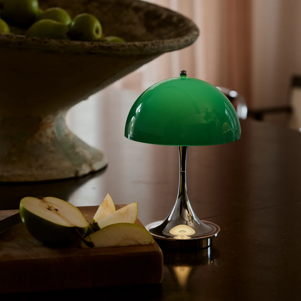 Die Panthella Leuchte wurde 1971 von dem dänischen Designer Verner Panton entworfen und ist seither ein ikonisches Beispiel für modernes, skandinavisches Design. Panton war bekannt für seine kreative Herangehensweise an organische Formen und für seinen visionären Einsatz von Farbe und Licht. Die Panthella verkörpert seine Vorstellung, dass sowohl der Schirm als auch der Fuß als Reflektoren dienen sollten, um das Licht gleichmäßig im Raum zu verteilen. Die charakteristische, pilzartige Form der Leuchte und die weichen Linien machen sie zu einem zeitlosen Designklassiker, der bis heute nichts von seiner Relevanz verloren hat. Mit der neuen Version V3 verbindet Louis Poulsen die Designgeschichte und die Funktionalität dieser ikonischen Leuchte mit den Anforderungen der modernen, mobilen Beleuchtung.