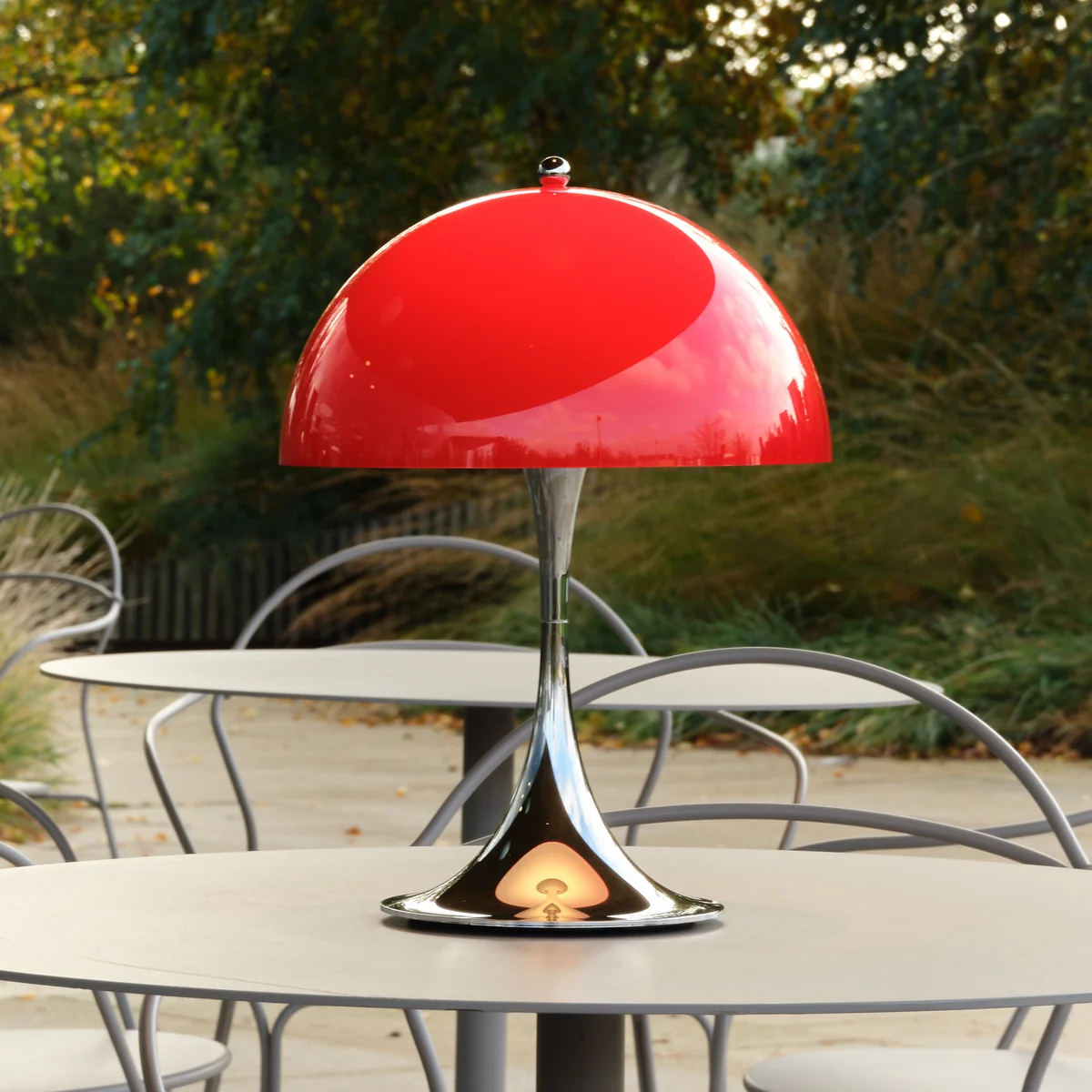 Die Panthella 250 Portable Leuchte von Louis Poulsen bietet ein angenehm weiches und blendfreies Licht. Der Schirm aus lichtdurchlässigem Material lenkt das Licht nach unten und sorgt gleichzeitig für eine stimmungsvolle, gleichmäßige Ausleuchtung.