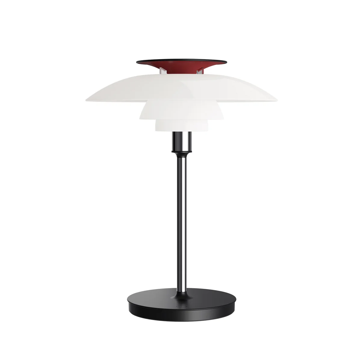 Die PH 80 Portable Akku LED-Tischleuchte basiert auf dem ursprünglichen Entwurf von 1974, der als Hommage an den dänischen Designer Poul Henningsen entstand. Sie überträgt das Prinzip der mehrschichtigen Schirmkonstruktion auf ein tragbares Format und sorgt so für eine blendfreie, gleichmäßige Lichtverteilung. Mit ihrem warmen, diffusen Licht schafft sie eine angenehme Atmosphäre in verschiedenen Umgebungen und vereint Funktionalität mit klassischer Formensprache.