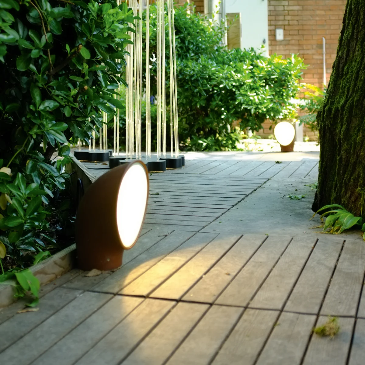Der Körper der Stehleuchte besteht aus wetterbeständigem Aluminium, in das eine Scheibe aus gehärtetem Glas eingebaut wurde. Das Produkt ist in mehreren Farbvarianten erhältlich.