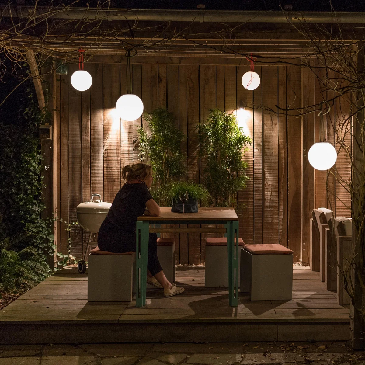 Wenn Bolleke eingeschaltet ist, erinnert sie an eine Perle, die dank der durchdachten Form gleichmäßiges und warmes Licht verteilt. Mit der Silikonaufhängung kann die Hängeleuchte an jeder beliebigen Stelle im Haus oder im Garten aufgehängt werden. Ein Ast ist da genau so gut wie die Rückenlehne eines Stuhls oder die Bettkante.