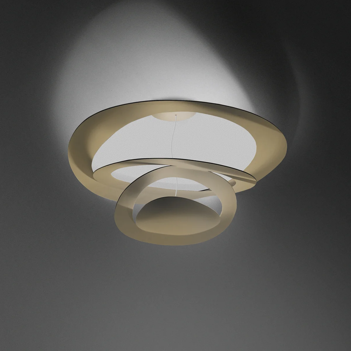 Die Pirce Soffitto Deckenleuchte von Artemide, die eher an eine künstlerische Installation als an eine Deckenleuchte erinnert, ist ein Entwurf des Designers Giuseppe Maurizio Scutella.