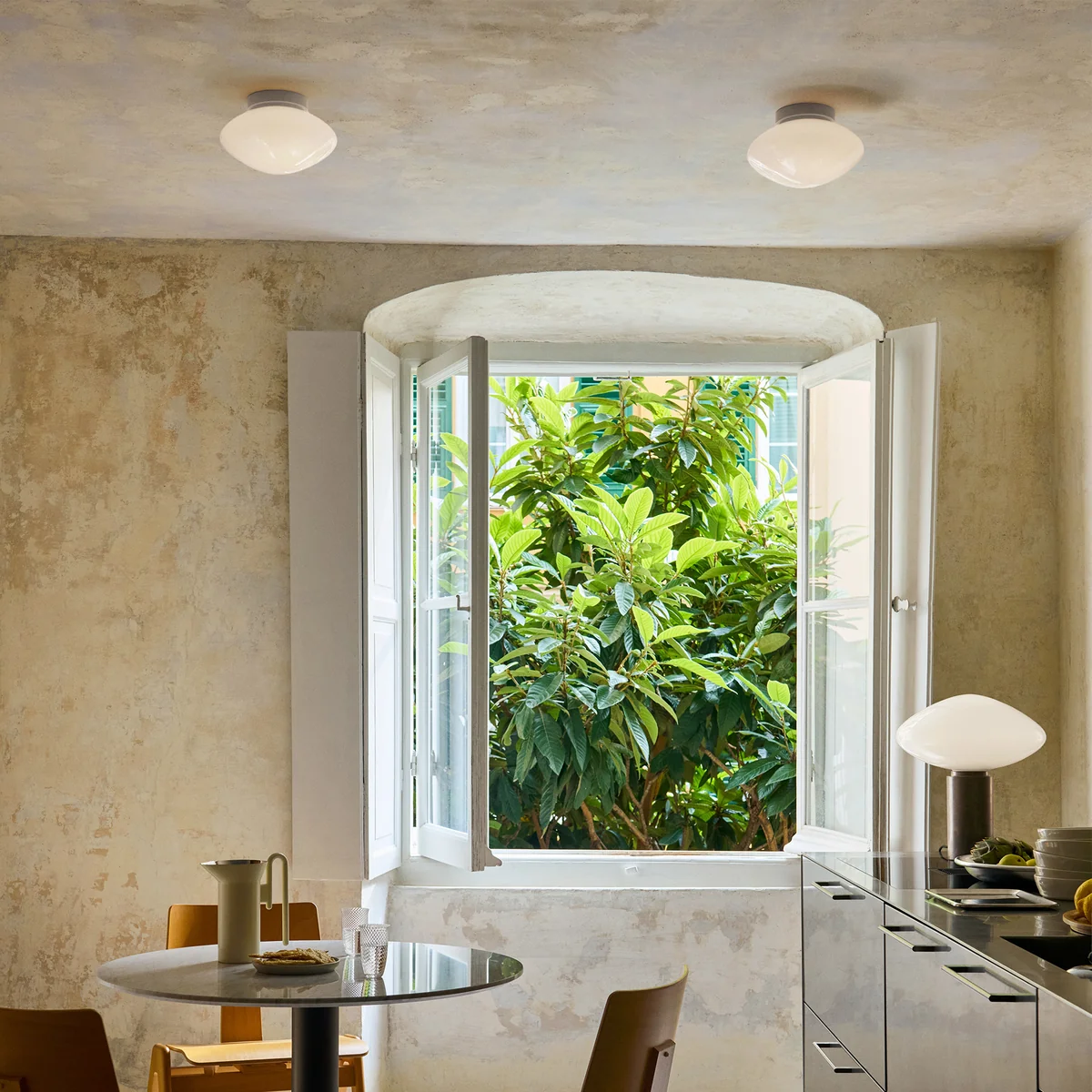 - Mundgeblasenes Glas für sanftes, atmosphärisches Licht