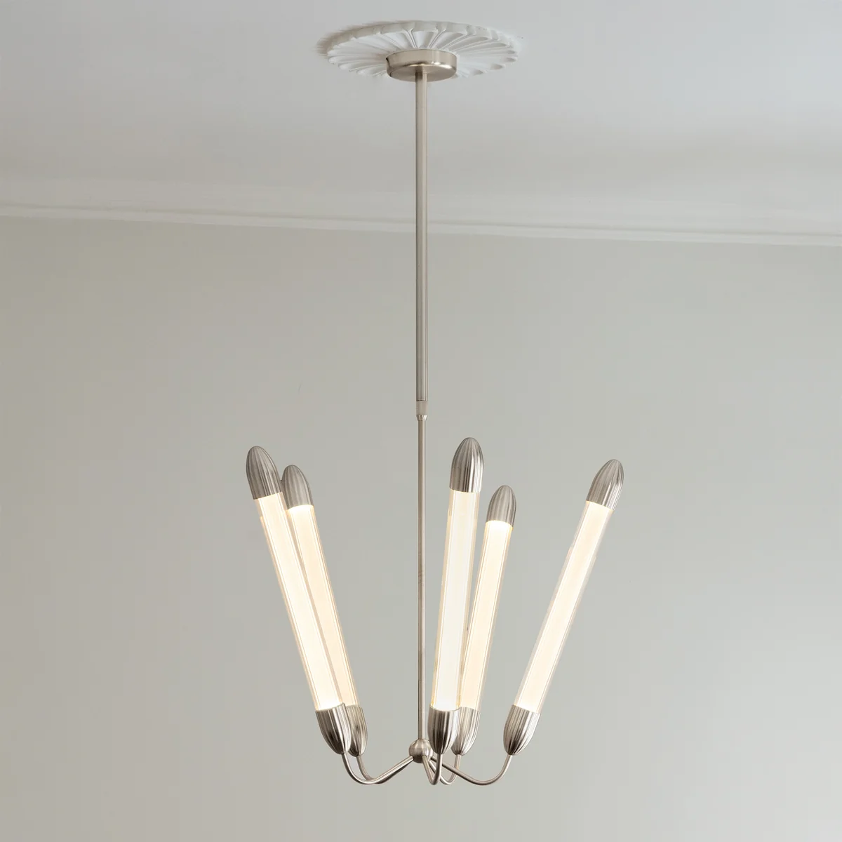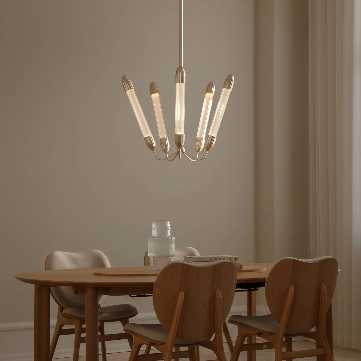 Der Lemon Squeeze Kronleuchter, entworfen von Søren Ravn Christensen, vereint zeitlose Formensprache mit feinen dekorativen Anklängen. Gefertigt aus extrudiertem Glas mit charakteristischer Riffelung, fängt er das Licht auf elegante Weise ein und erzeugt eine warme, harmonische Atmosphäre. Ein zentraler Diffusor sorgt für gleichmäßige, sanfte Beleuchtung, während dezente Metallakzente dem Design einen skulpturalen, edlen Ausdruck verleihen. Ob im Wohnzimmer, Flur oder über dem Esstisch – die Lemon Squeeze Deckenleuchte verbindet Funktionalität mit poetischer Leichtigkeit und klassischer Raffinesse.
