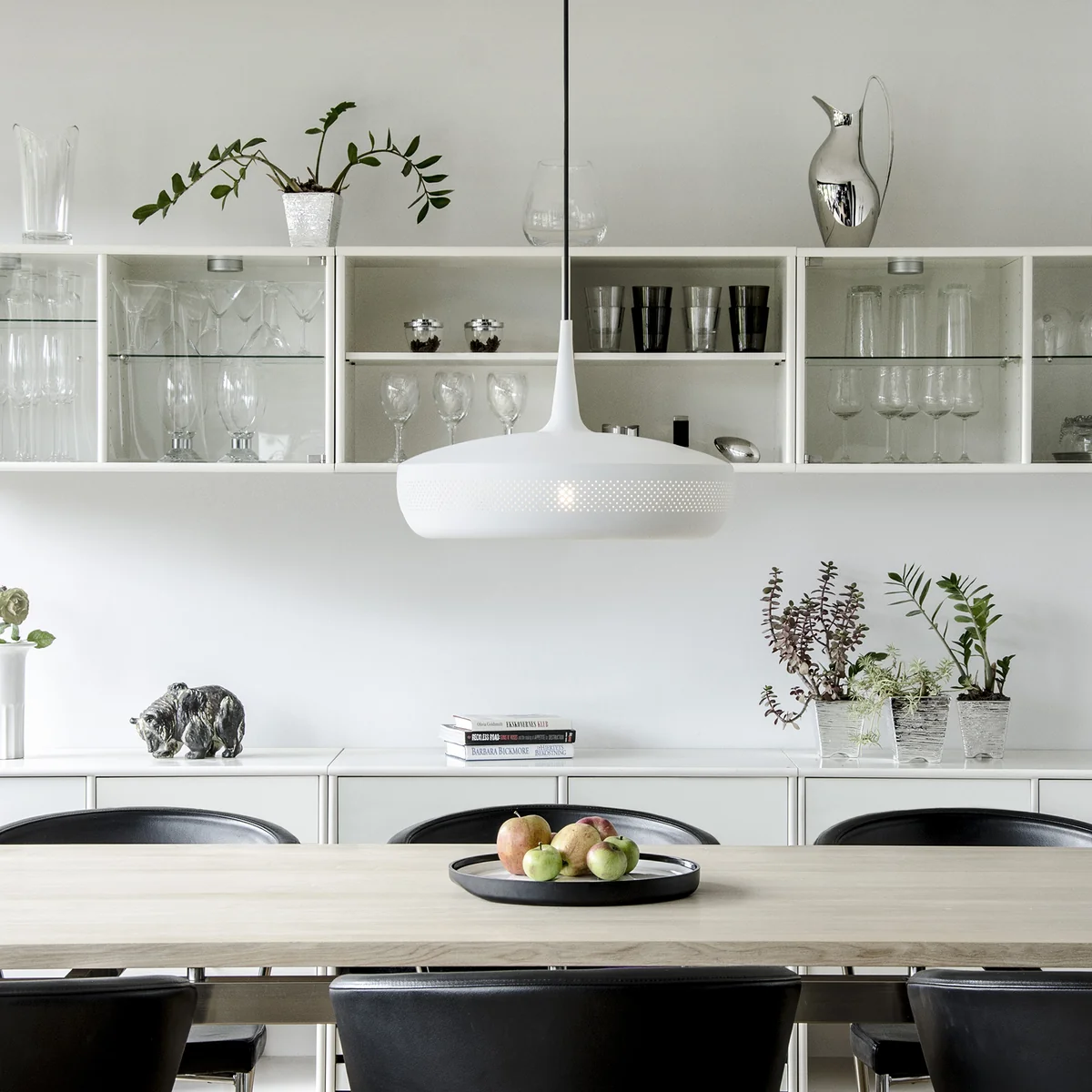 Die Clava Dine von Umage ist eine Variante des ausgefallenen Klassikers Clava im Retro Charme und speziell für Esstische und große Wohnräume konzipiert. Die Clava Dine knüpft an den Erfolg der Clava Pendelleuchte an und ist in Ihrer Form die große Schwester der schmalen, modernen Lampe.