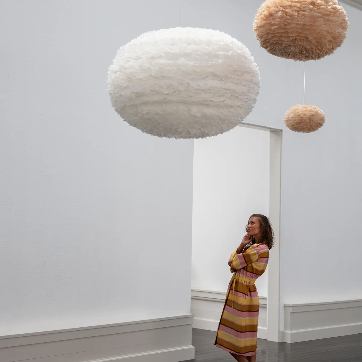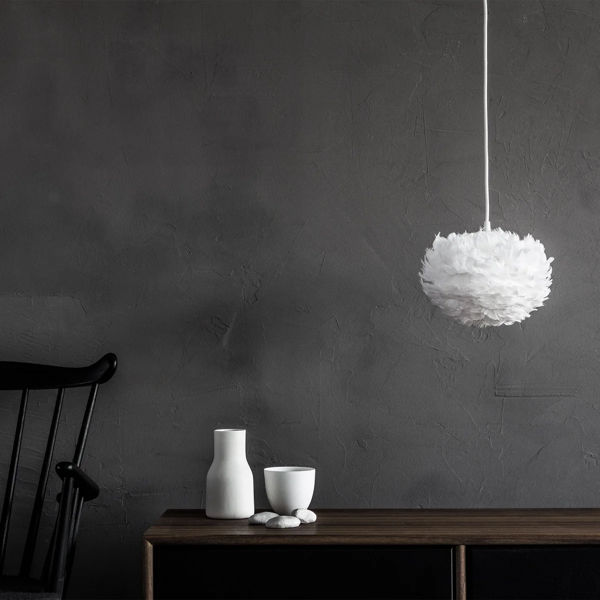 Eos verkörpert all die Werte, für die der dänische Hersteller Umage steht: Gefertigt aus echten Vogelfedern ist die Pendelleuchte ein Sinnbild für nachhaltige Produktion. Dabei versprüht die Leuchte eine romantische Leichtigkeit, mit der sie fast wie von allein zu schweben scheint.
