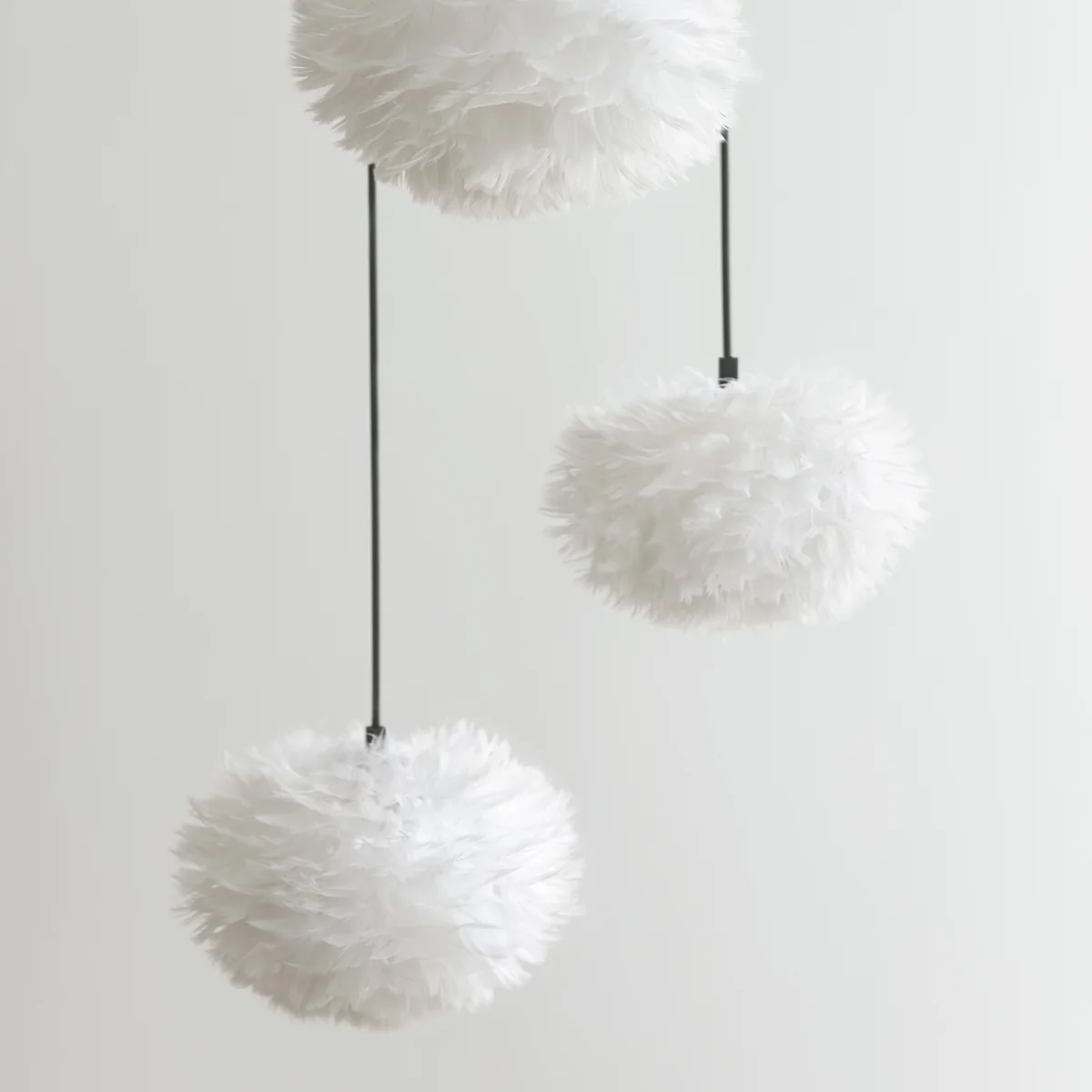 Jede einzelne Feder wird bei der Umage Eos Pendelleuchte sorgfältig mit der Hand angebracht. Durch die Federn gedämpft, erstrahlt die Eos Leuchte in einem warmen, indirekten Licht. Damit lässt sich die Federnleuchte besonders im Wohn- und Schlafbereich einsetzten - dort schafft die Umage Leuchte eine gemütliche und atmosphärische Stimmung.