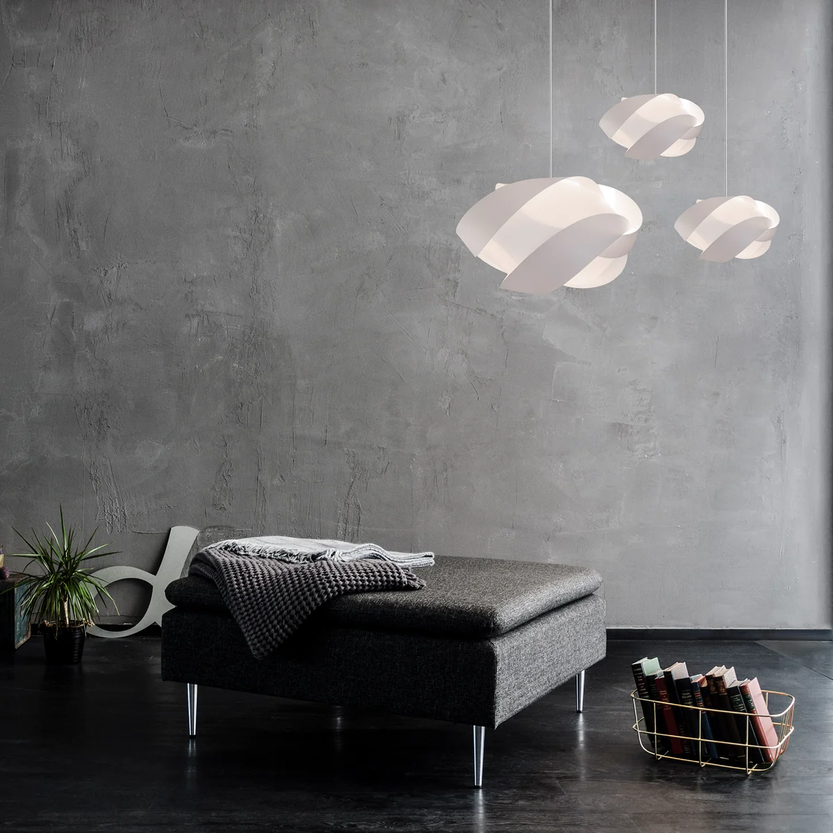 Mit dem passenden Zubehör von Umage kann der Lampenschirm ganz nach Wunsch entweder an der Decke oder Wand montiert werden oder als Steh- oder Tischleuchte für einen Blickfang sorgen.