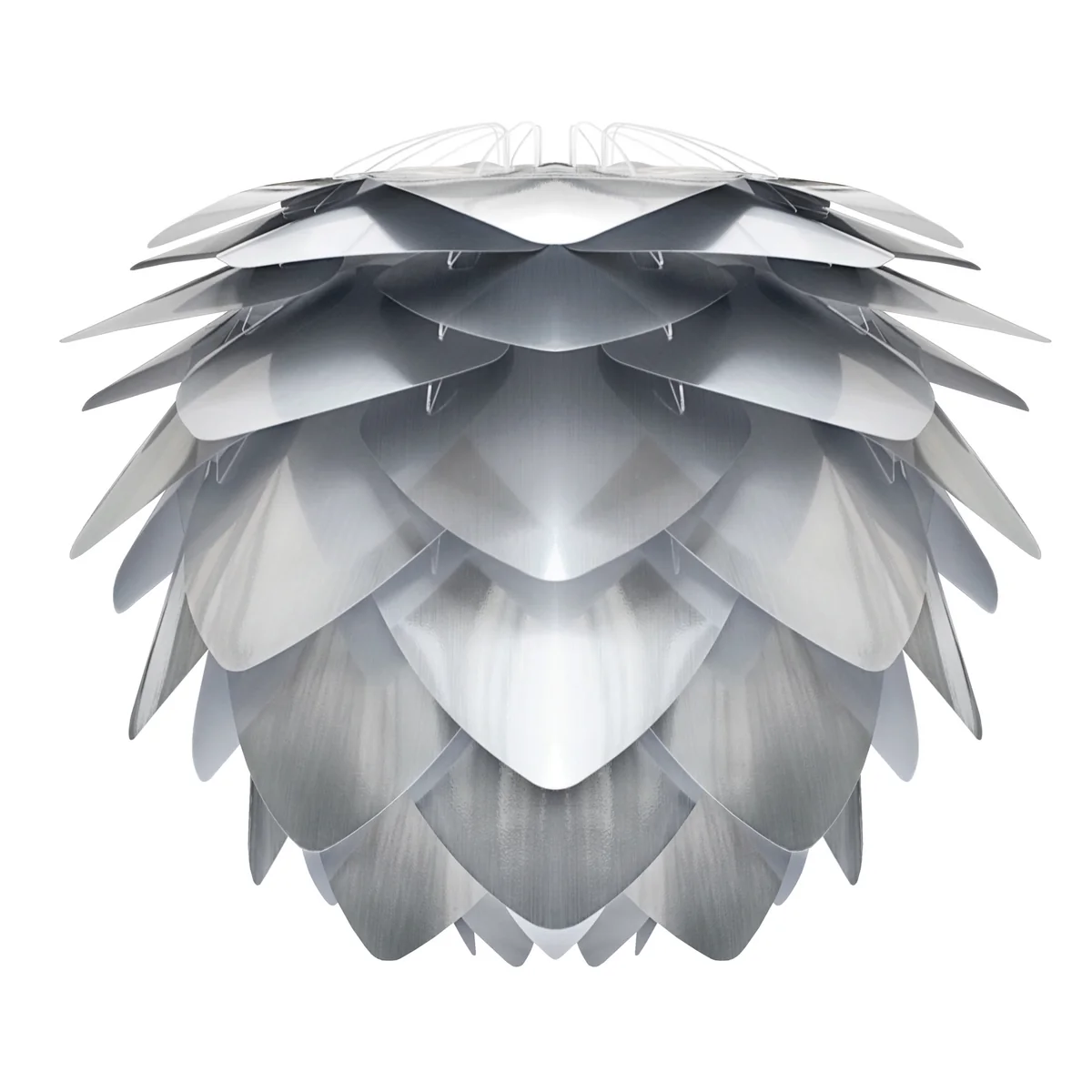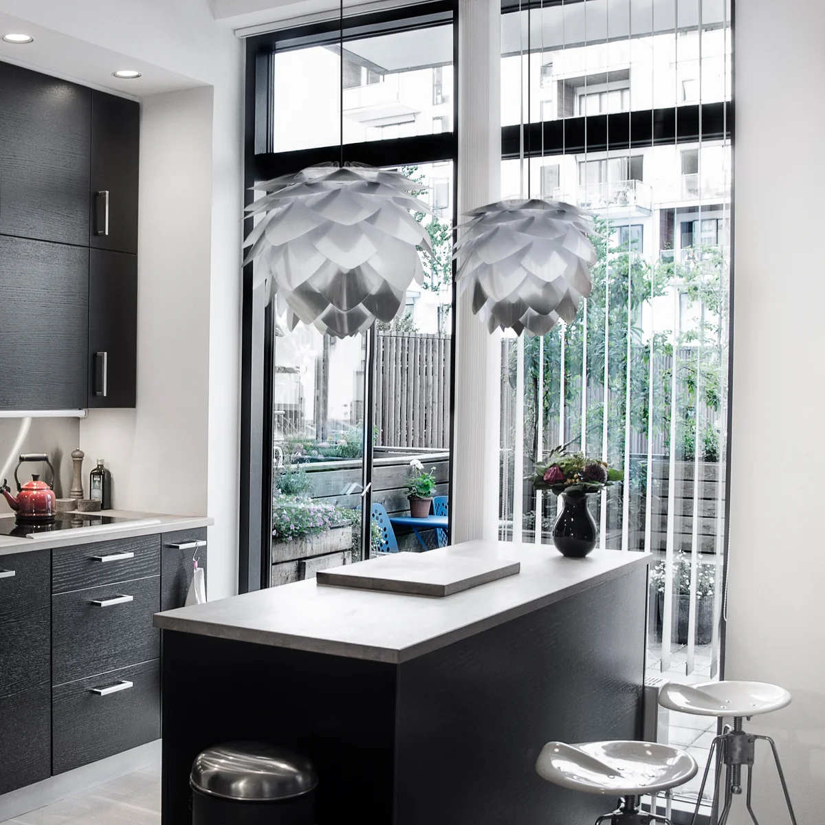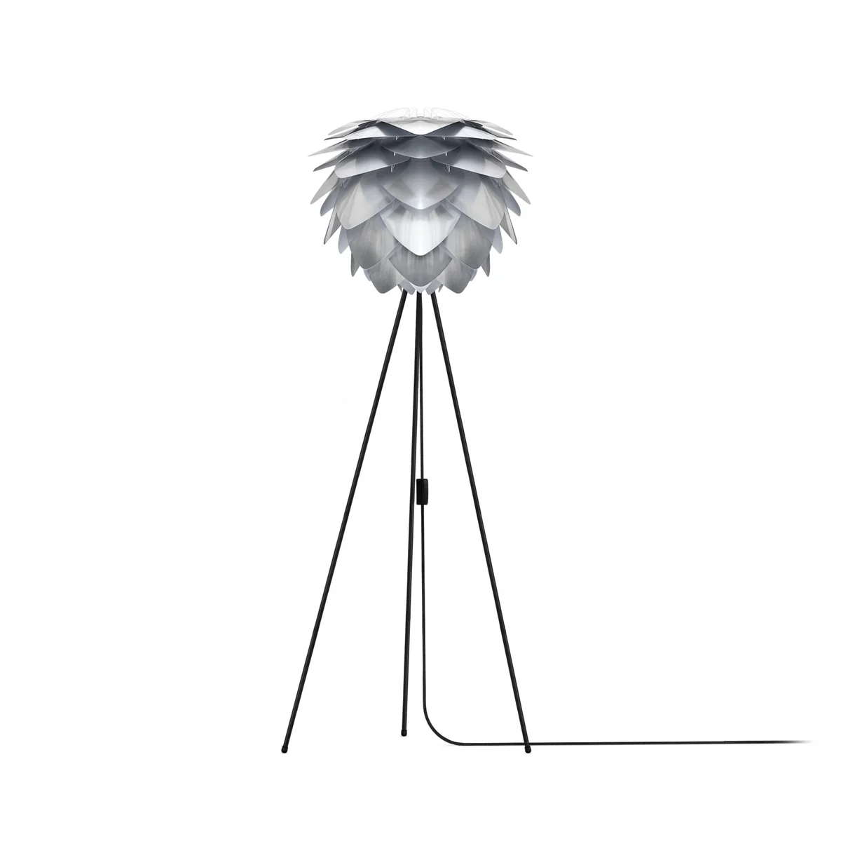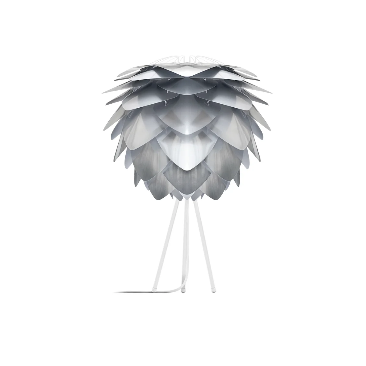 Silvia Steel ist eine Weiterführung der beliebten Umage Leuchte. Im metallischen Stahl-Look begeistert die wabenförmige Leuchte mit einer exklusiven Optik. Universell lässt sich die Leuchte mit Baldachin in eine Pendel- oder mit passendem Tripod-Untergestell in eine Tisch- oder Stehleuchte verwandeln.