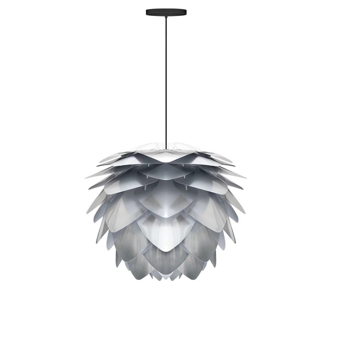 Da Umage alle Leuchten ohne Kabel, Fassung und Leuchtmittel ausliefert, kann die Silvia Leuchte mit dem passenden Zubehör auch als Tisch- oder Stehleuchte eingesetzt werden. Für den Einsatz als Pendelleuchte eignet sich das universelle Kabelset, das für alle Umage Leuchten geeignet ist.