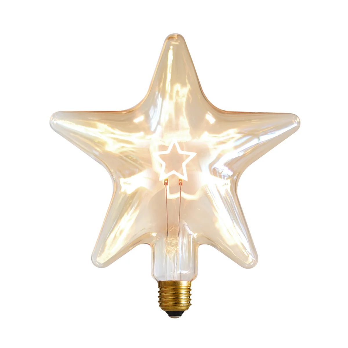 Nicht nur das Glas, sondern auch das Filament ist wie ein Stern geformt, sodass ein harmonisches Gesamtbild entsteht. Die dimmbare Lampe besitzt eine E27 Fassung und kann mit allen Leuchtkabeln von NUD Collection kombiniert werden.
