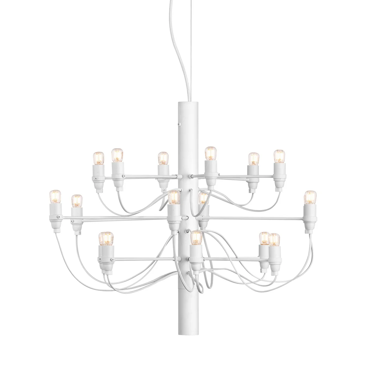 Die Glühbirnen befinden sich harmonisch verteilt auf den aus Stahl gearbeiteten Armen des Leuchters und tauchen jeden Raum in sanftes Licht. Anders als viele andere klassische Kronleuchter wirkt der 2097 modern und klassisch zugleich. Der Kronleuchter ist in verschiedenen Größen und Materialbehandlungen erhältlich.