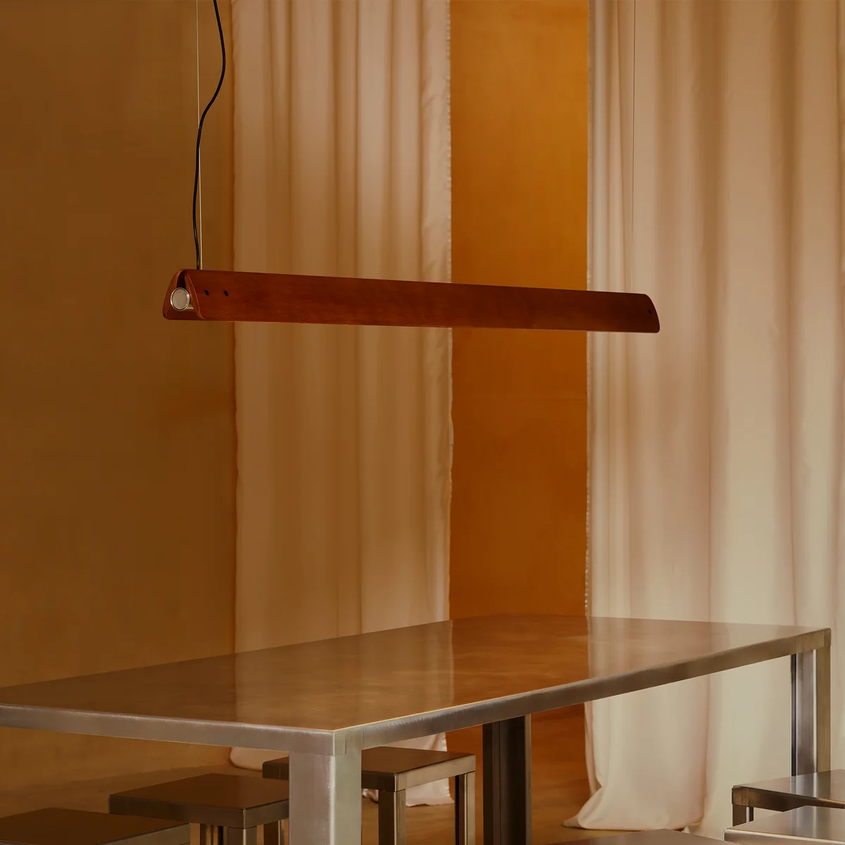 Die Seki-Han Pendelleuchte, entworfen von Tobia Scarpa, ist eine Neuauflage seines ikonischen Designs von 1963 – ein Meisterwerk, das Holzhandwerk, Ingenieurskunst und Lichtpoesie vereint. Zwei waagerechte Flügel aus Eschenholz, verbunden durch verchromte Metallbeschläge, umrahmen eine zentrale, röhrenförmige Lichtquelle, die sowohl direktes als auch indirektes Licht erzeugt. Durch das Rotieren der Holzflügel lässt sich der Lichtaustritt symmetrisch oder asymmetrisch steuern – eine subtile, skulpturale Geste, die den Raum in Bewegung versetzt.